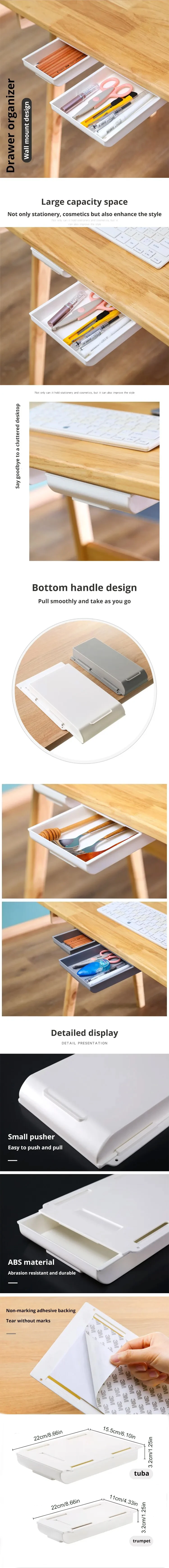 1pc White SelfAdhesive Storage Drawer Box Makeup Pencil Tray Desk Hidden Under Desk Stand Self-adhesive Under-drawer Storage Box