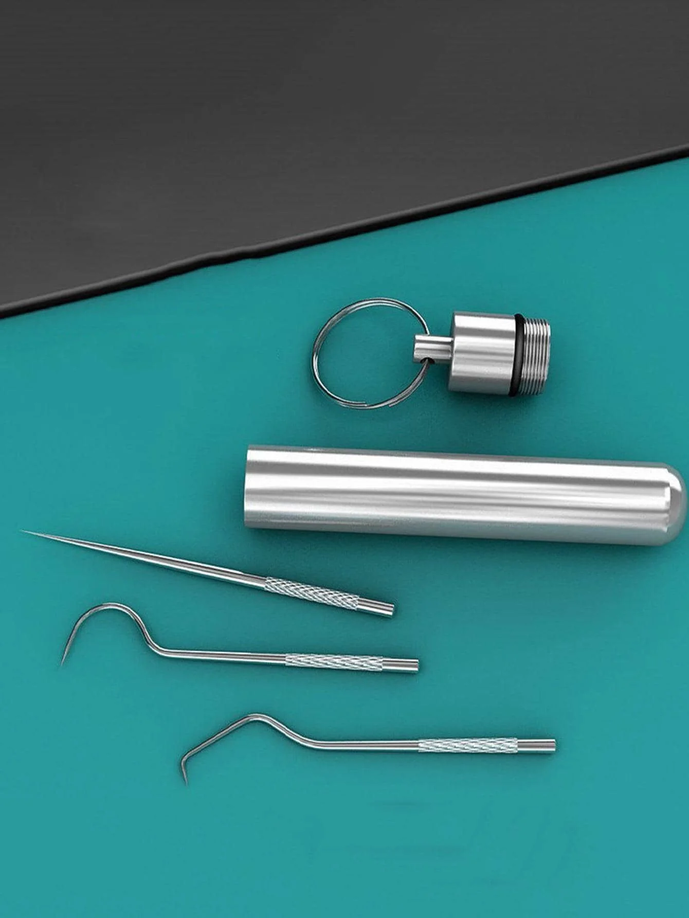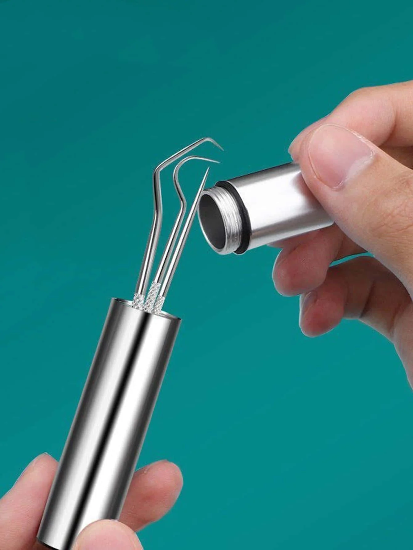 1set-Stainless Steel Toothpick Set Tooth Flossing Reusable Toothpicks Portable Toothpick Floss Teeth Cleaner Oral Cleaning