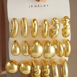 18 Pcs/Set Large C-Shape Teardrop Hoop Earrings for Women Fashion Gold Color Exaggerated Twist Earring Daily Wear Jewelry Gifts