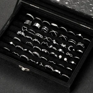 58 Pcs/Set Gold Color Rings Set For Women Men Vintage Hollow Butterfly Pearl Heart Crystal Geometric Rings Trendy Finger Jewelry