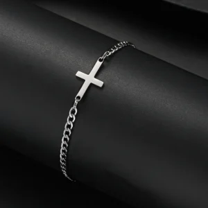 Simple Men’s Stainless Steel Cross Cuban Bracelets Punk Silver Color Charm Bracelet Fashion Hip Hop Daily Jewelry Accessory 2025