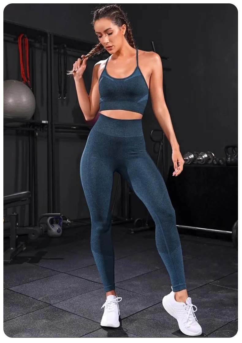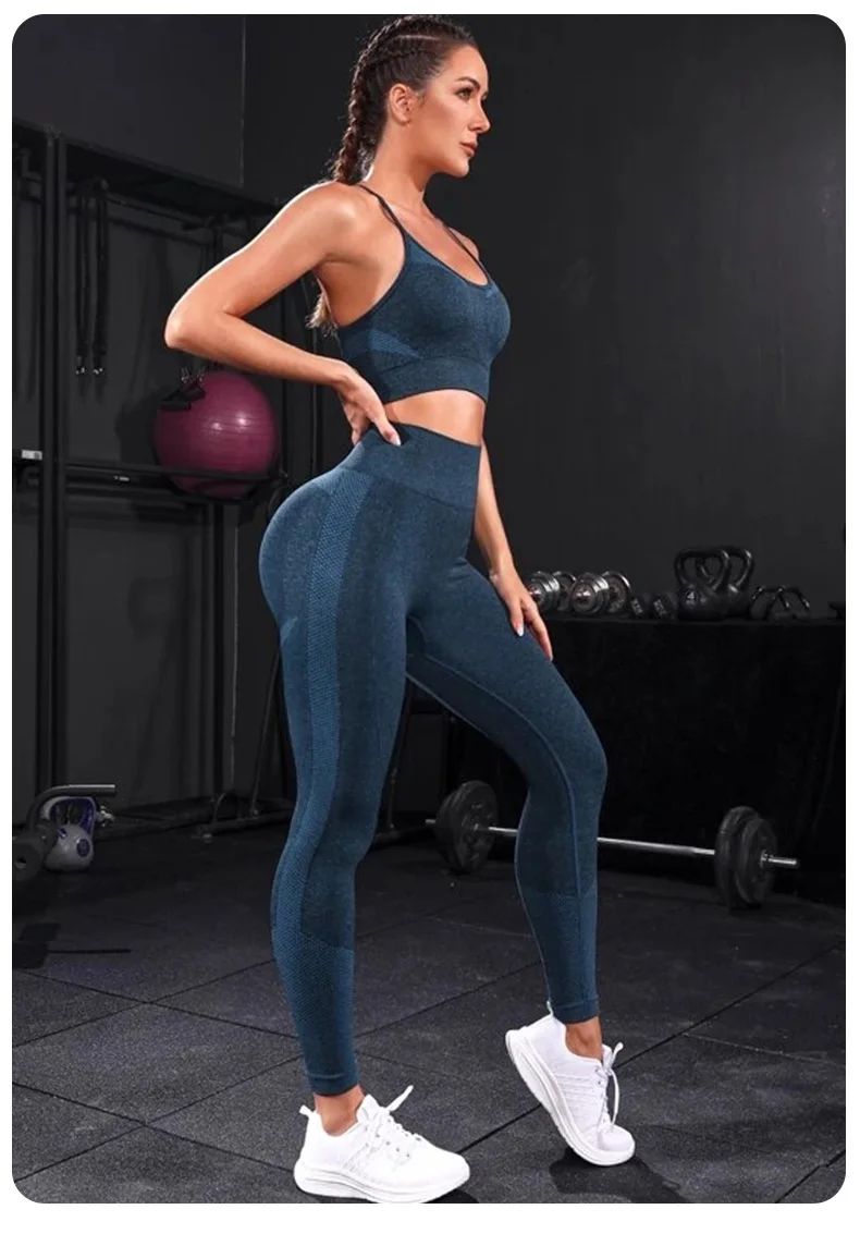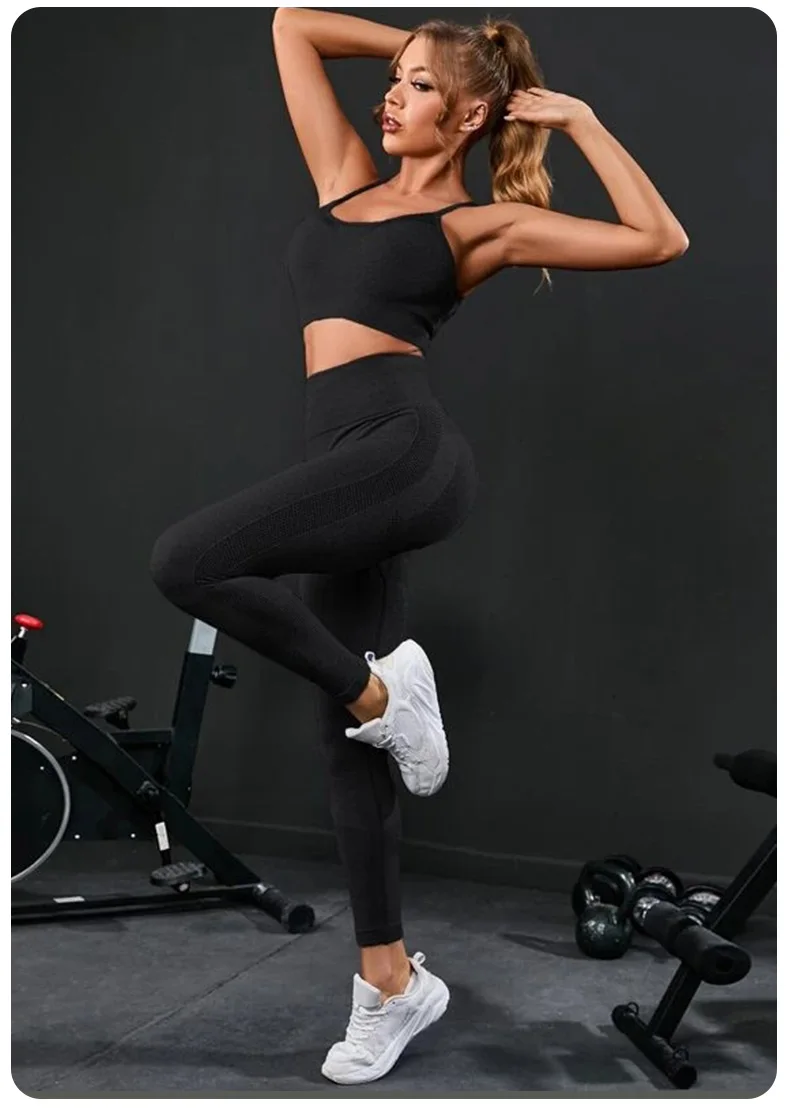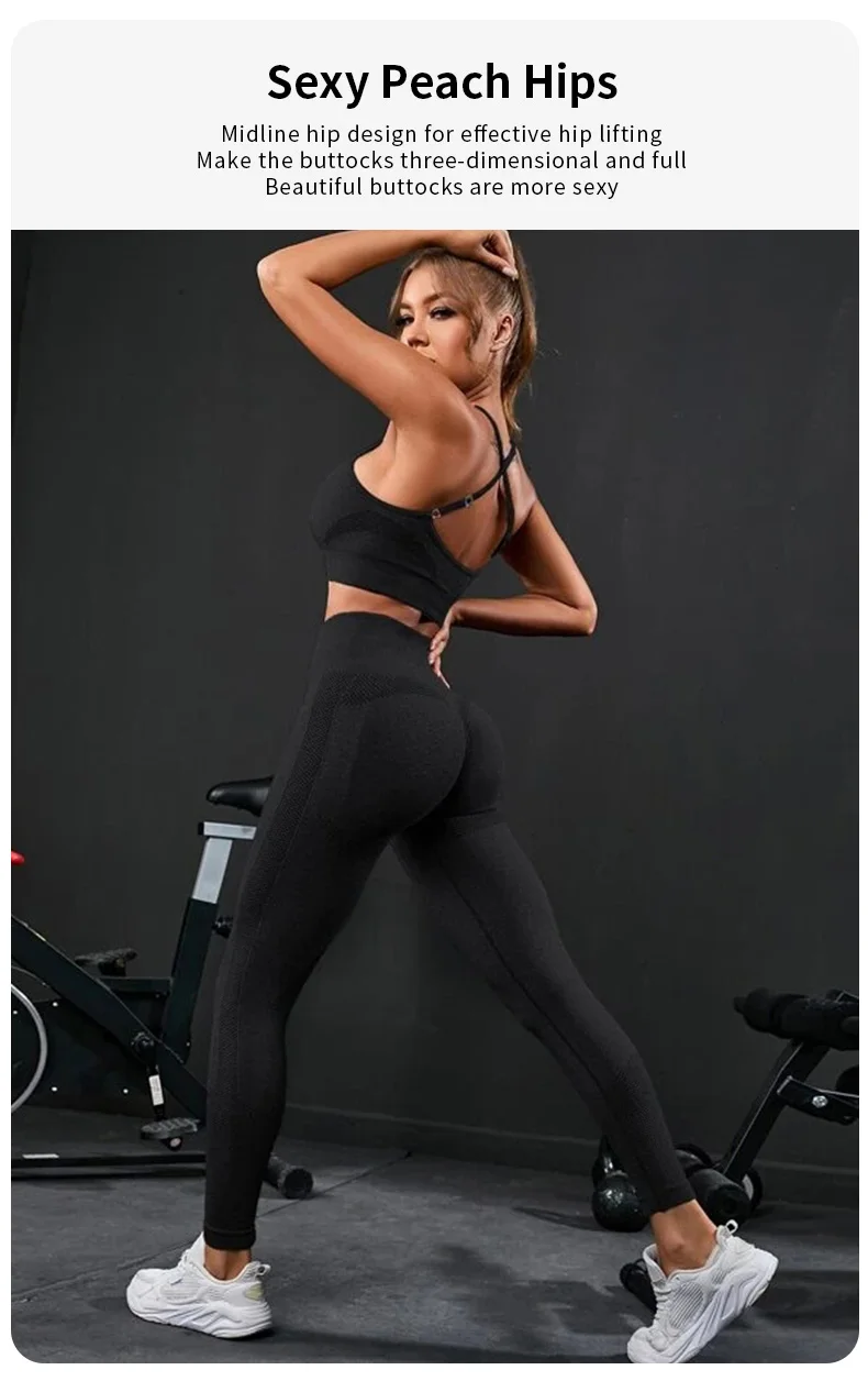 2 Pieces Women’s Tracksuit Seamless Yoga Set Workout Sportswear Gym Clothing High Waist Leggings Fitness Sports Suits