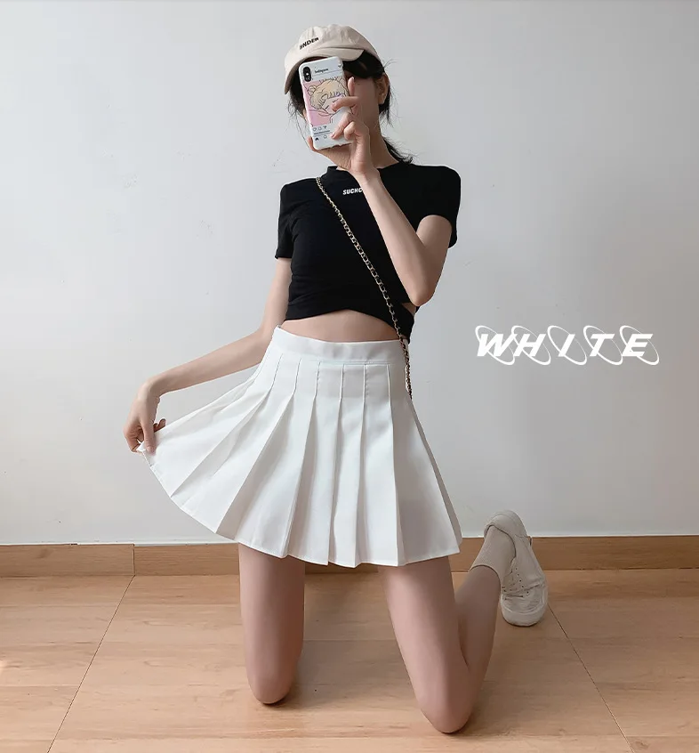 2024 White Women Pleated Skirts Summer High Waist Zipper Girls Dancing JK Mini Skirts Black Fashion Student A Line Faldas