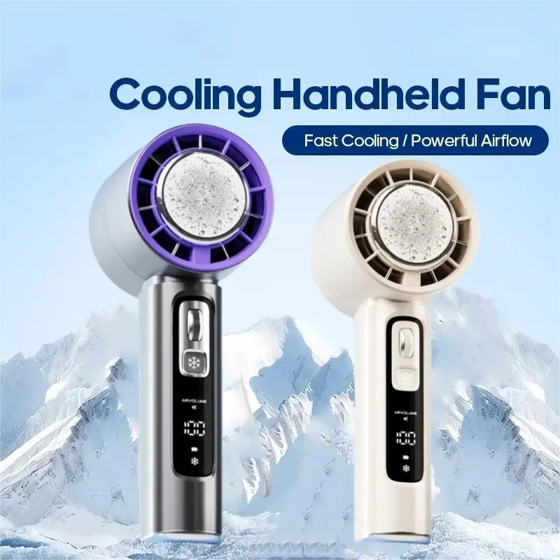 Introducing the Ice-cooling High-Speed Handheld Fan, a state-of-the-art cooling device designed for powerful performance and advanced features. Ideal for personal use, this fan incorporates innovative cooling technology and smart design elements for enhanced comfort.