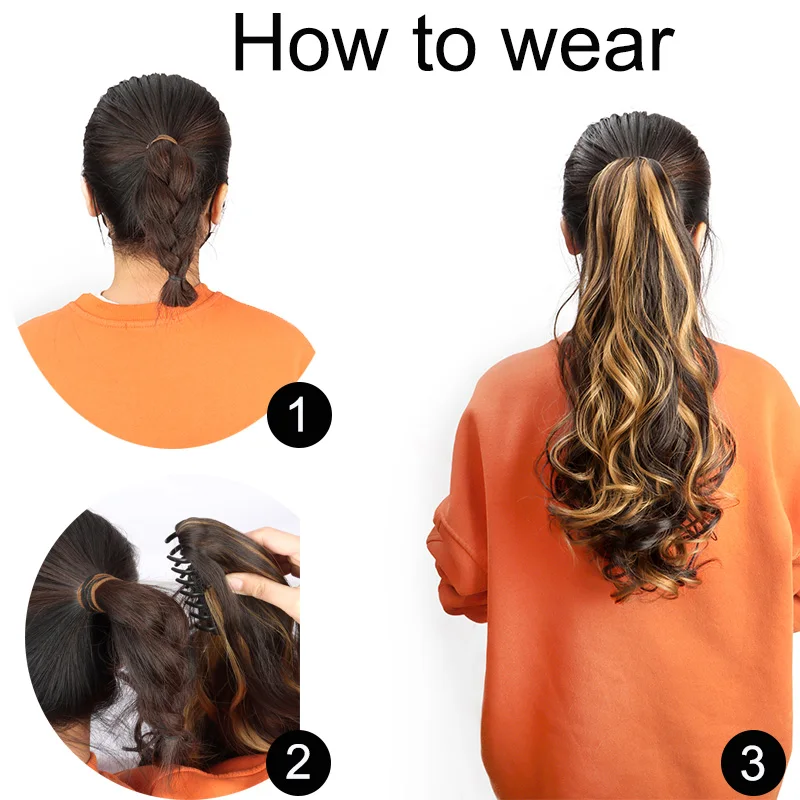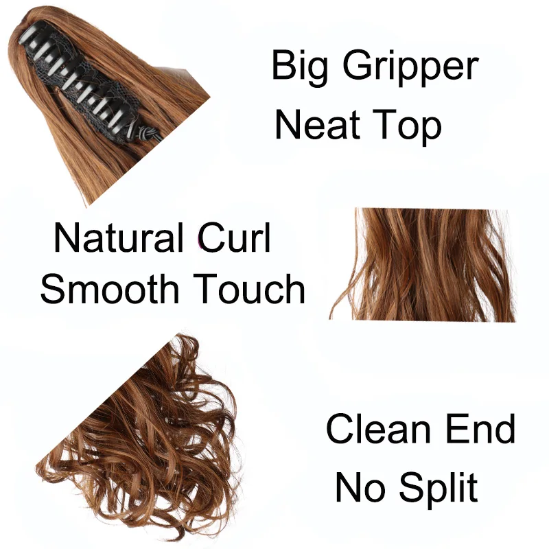 20Inch Synthetic Long Curly Ponytail Heat-resistant Claw Clip in Hair Extension Black Brown Hairpiece for Women