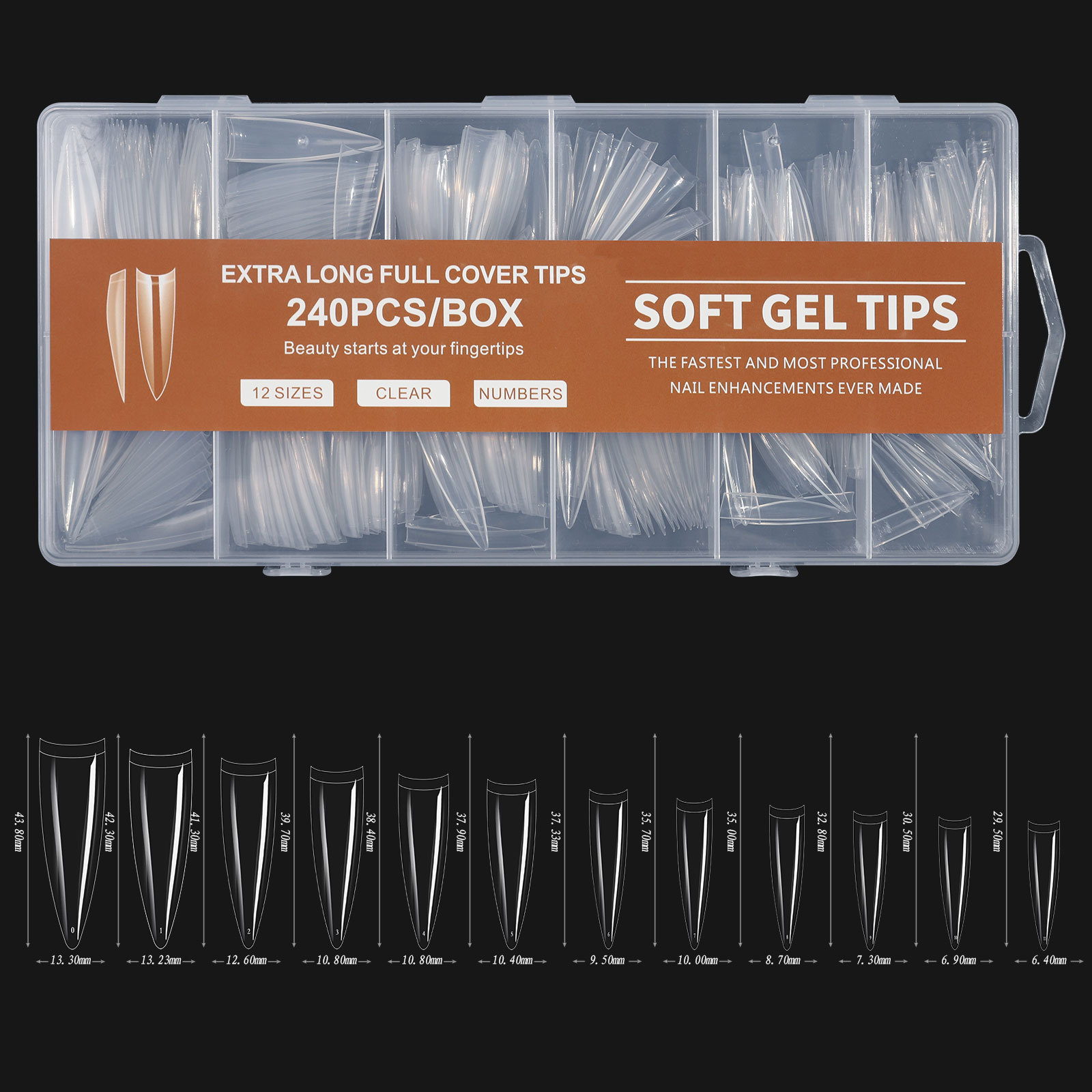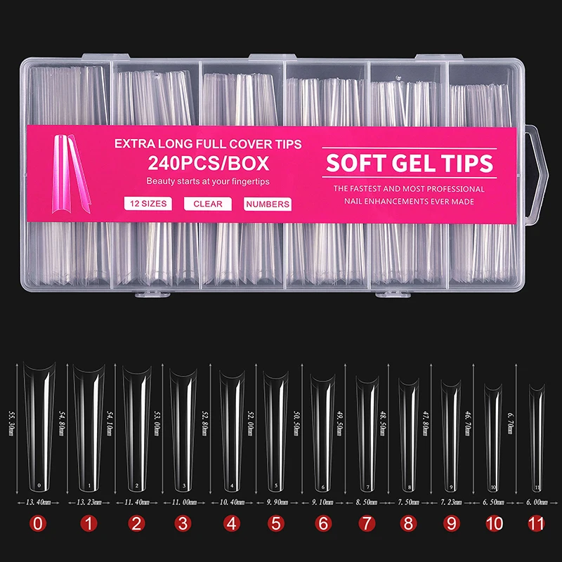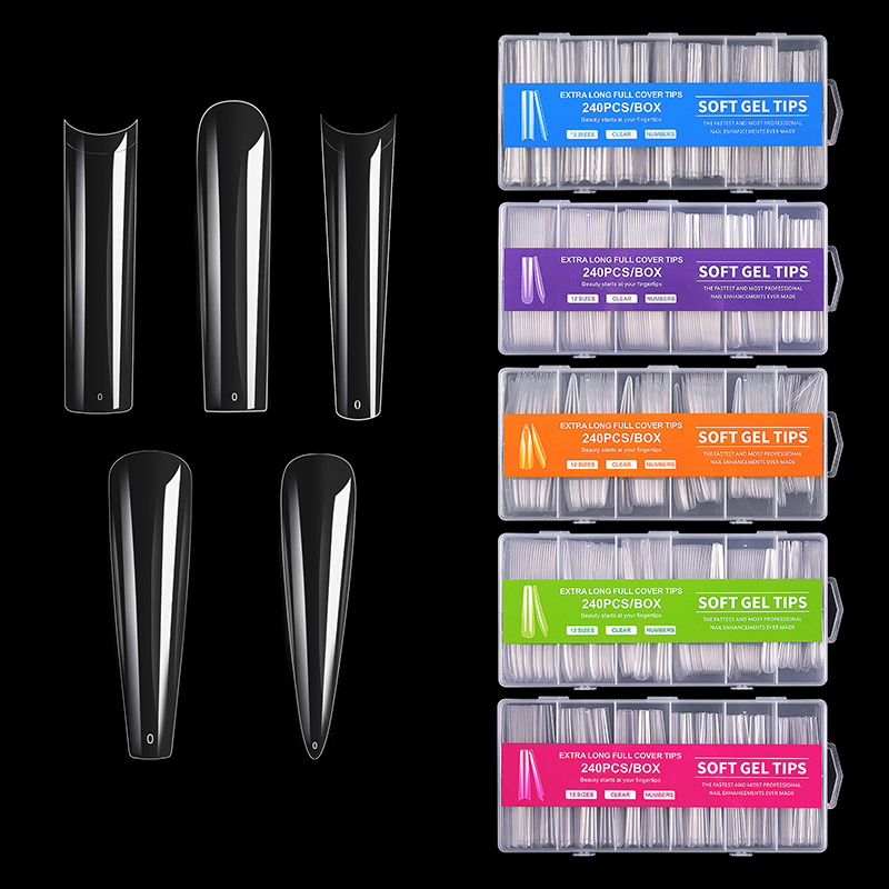 240pcs/box Press On Acrylic Nails Water Pipe Transparent Super Long Ballet False Nails For Nail Art Decoration