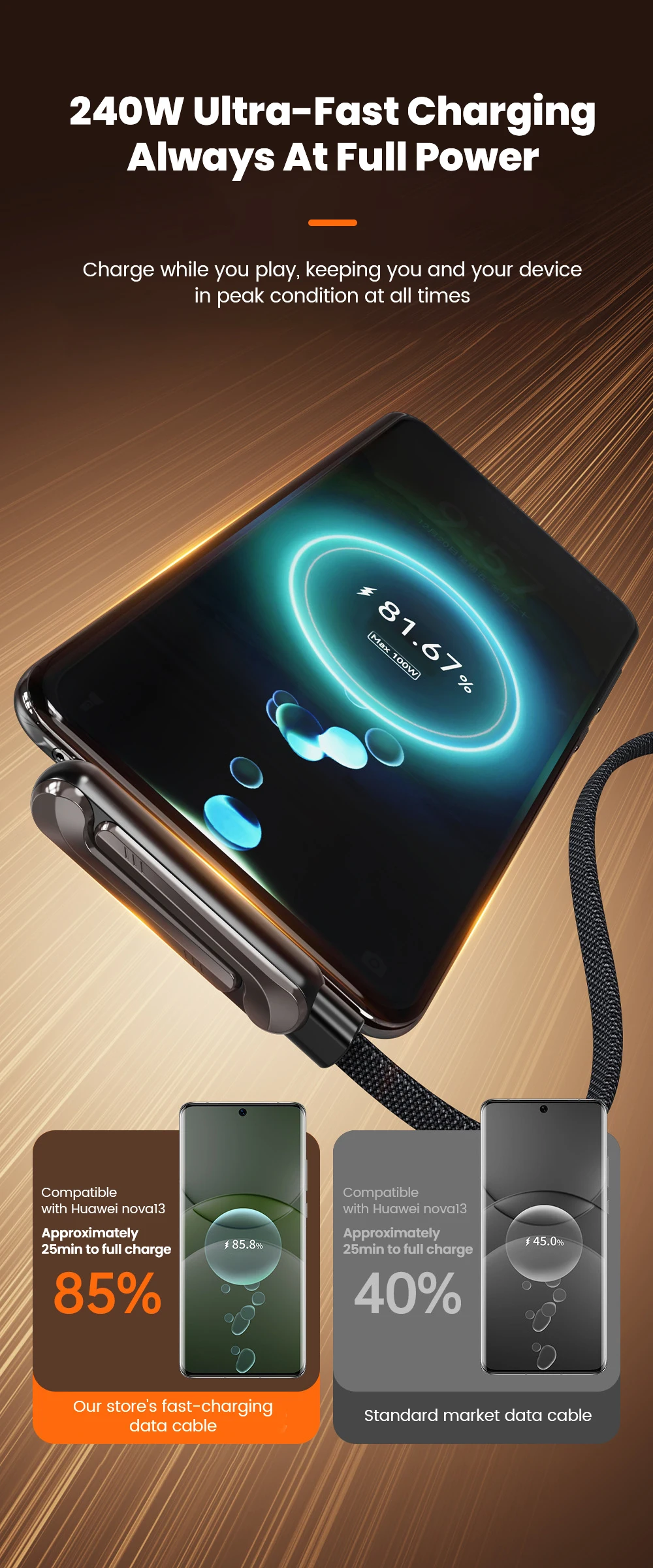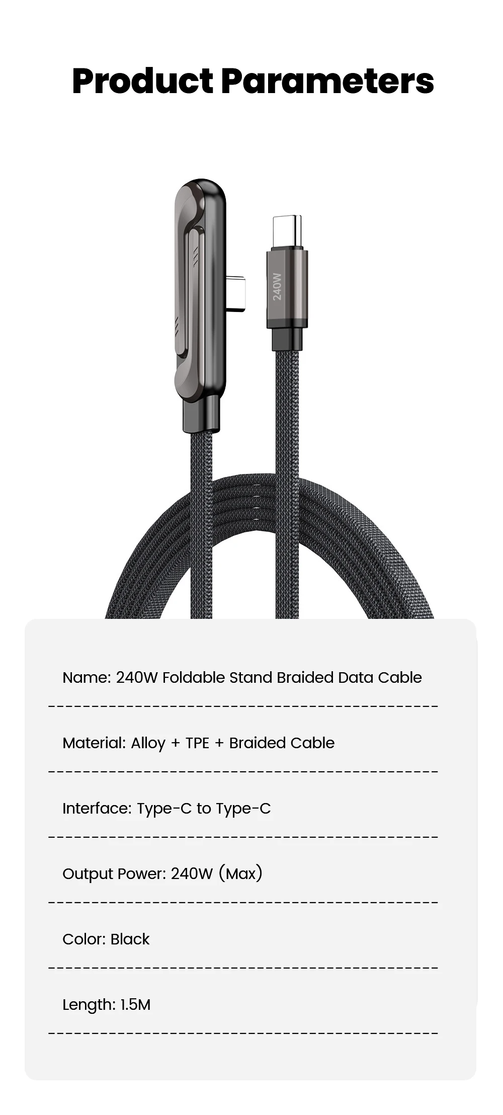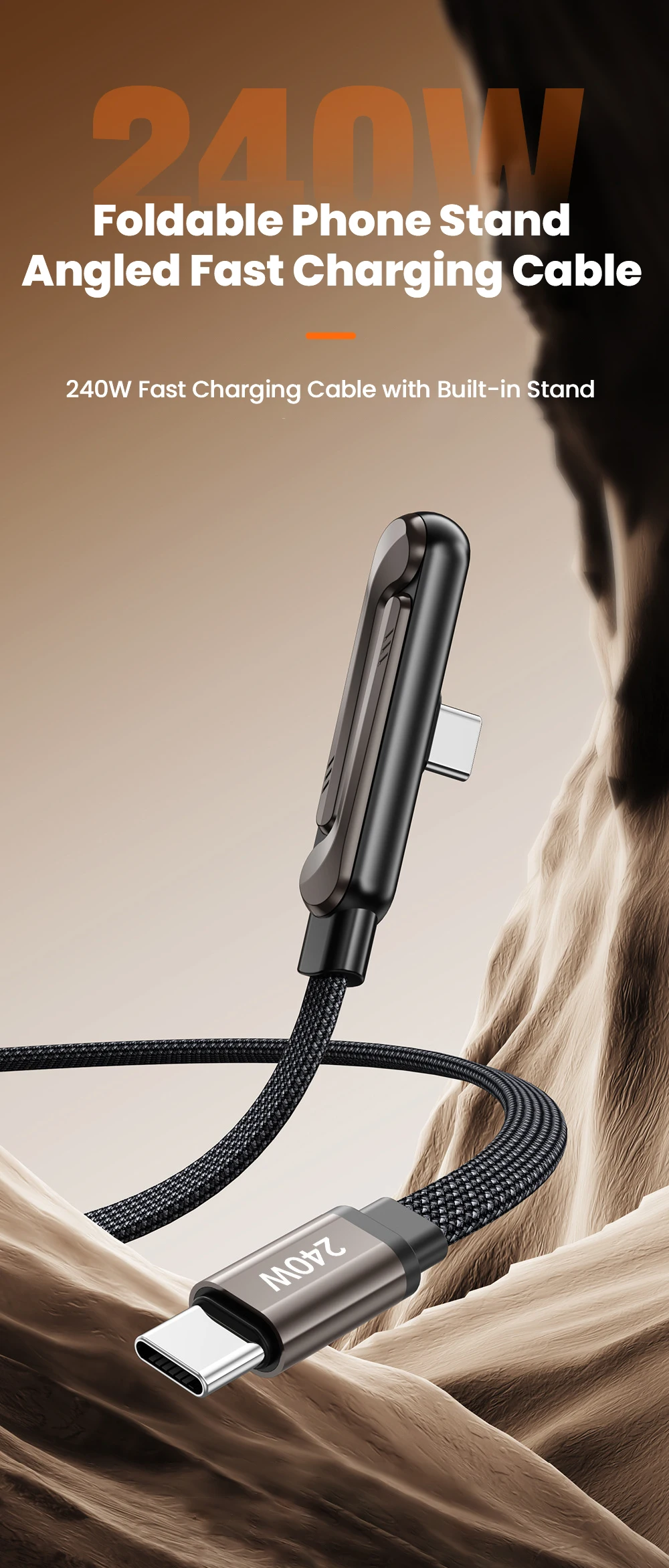 240W 2 in 1 USB C to USB C Fast Charging Foldable Bracket Data Cable Type C Desktop Holder Charging Wire For Iphone17 16 Samsung