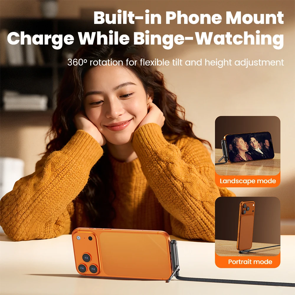 240W 2 in 1 USB C to USB C Fast Charging Foldable Bracket Data Cable Type C Desktop Holder Charging Wire For Iphone17 16 Samsung