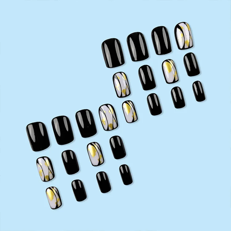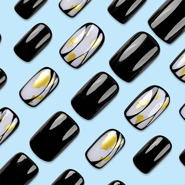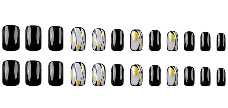 Be the first to review “24Pcs Short Black Square False Nails with Glue Gold Foil Nail Design Autumn Winter Press on Acrylic Nail Manicure Tips for Girls” Cancel reply