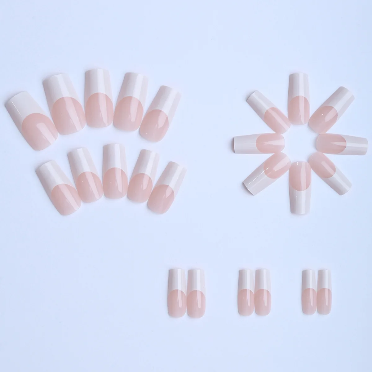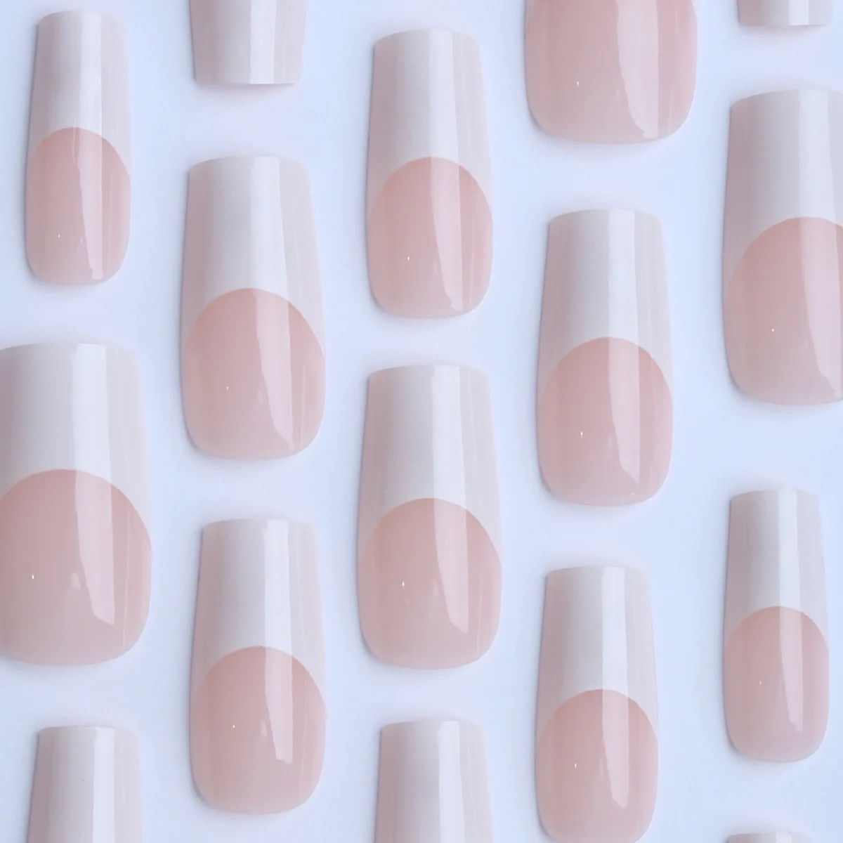 24pcs Simple White French Style False Nails Medium Coffin Nude Color Press On Nails Ins Style Detachable Fake Nail For Women