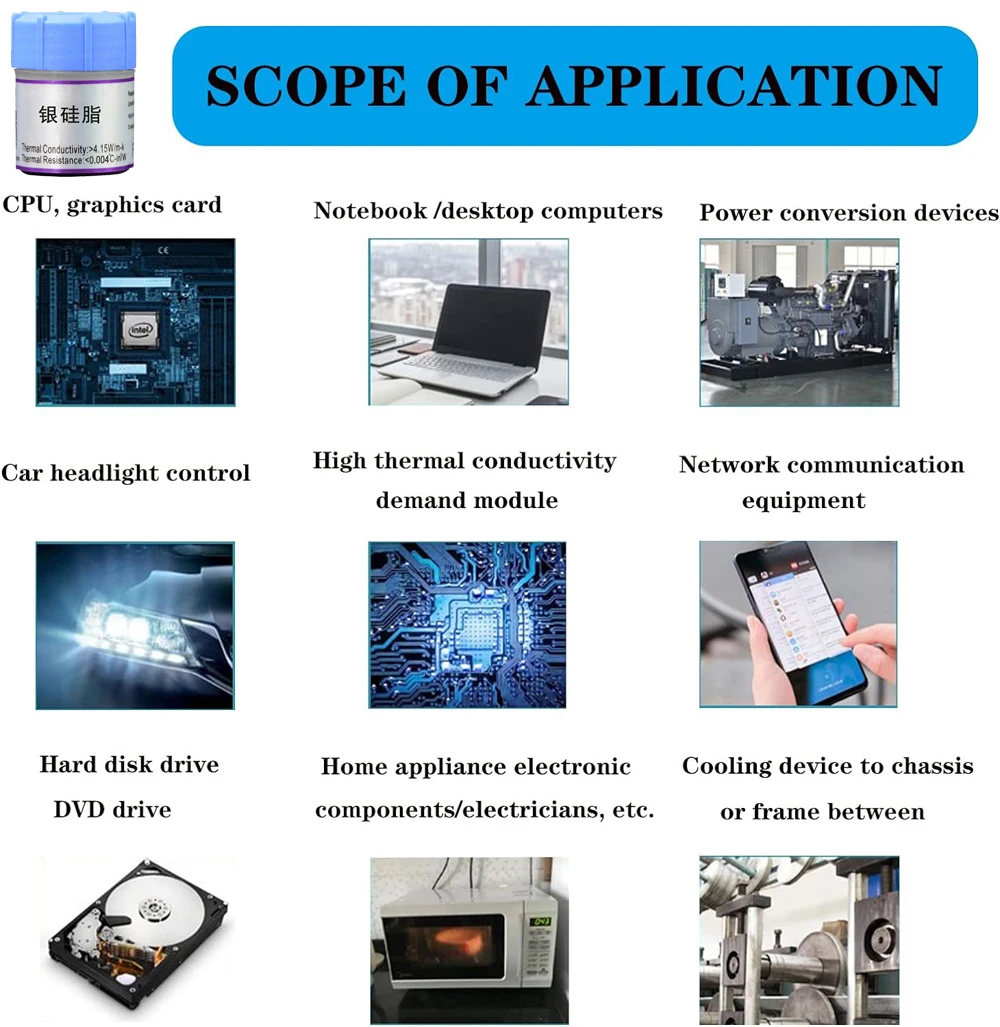 【 Versatile application】Thermal grease paste is suitable for CPU, GPU, heat sink, oven, chipset, Xbox, high power LED and other components. No matter what you need to dissipate heat, we can provide great help.