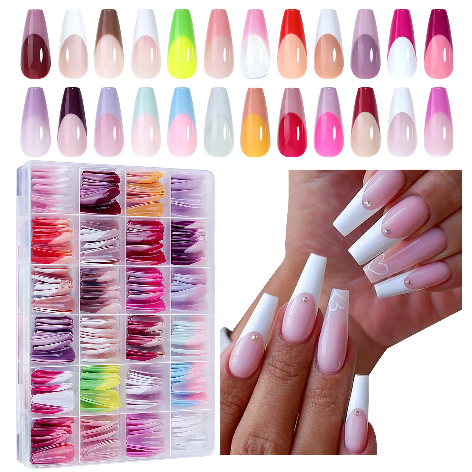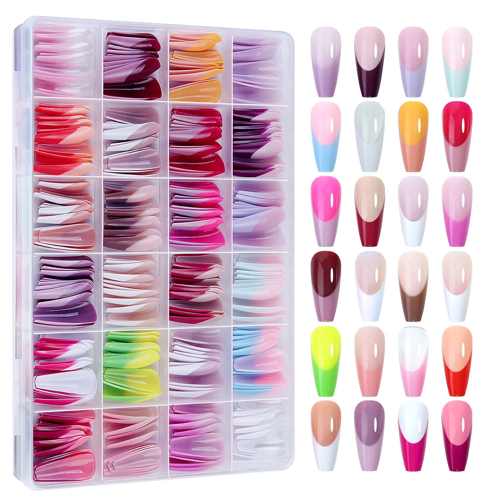 288PC False Nails Tips Coffin Almond Colorful French Acrylic Press On Nails Pre-Design Gel Nails Art Capsule For Girls Women