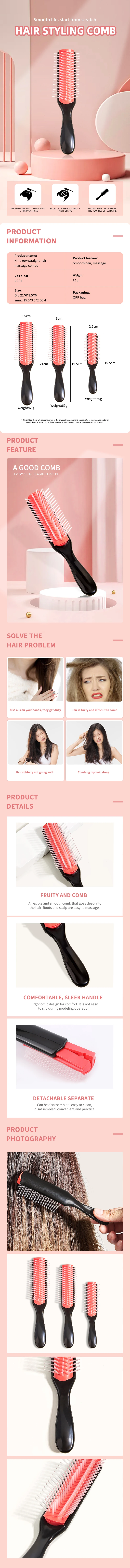 2pc/set Denman brush curly hair 9-Row Detangling Hair Brush Scalp Massager Straight Wet Comb magic demelant Women’s hair brush