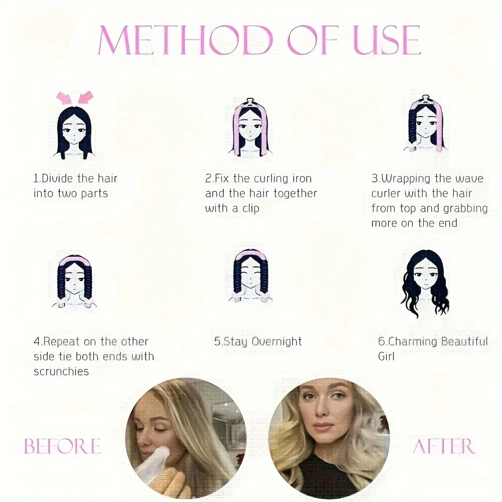 2pcs Heat Free Hair Curler Satin Silk Sleeping Cap Set Headwrap for Natural Curly Hair Long Hair Care Wave Sleeping Curling Tool