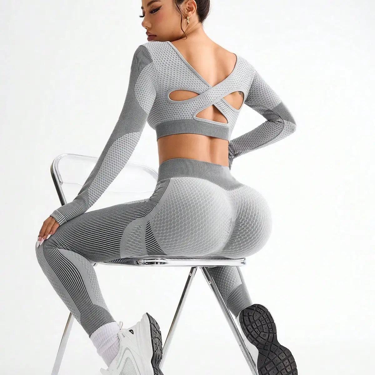 2pcs Hot-selling New Sports Tight Running Breathable Seamless Yoga Suit Women’s Outdoor Fitness Suit Women’s