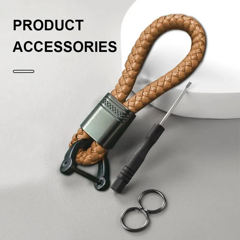 • Hand-woven leather rope :The keychain is made of hand-woven leather rope, giving it a unique and stylish look.