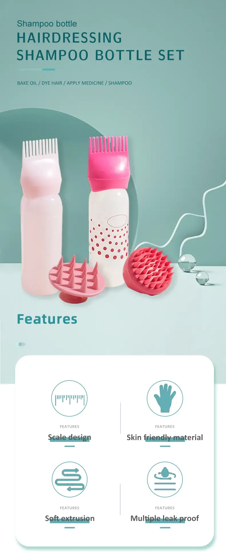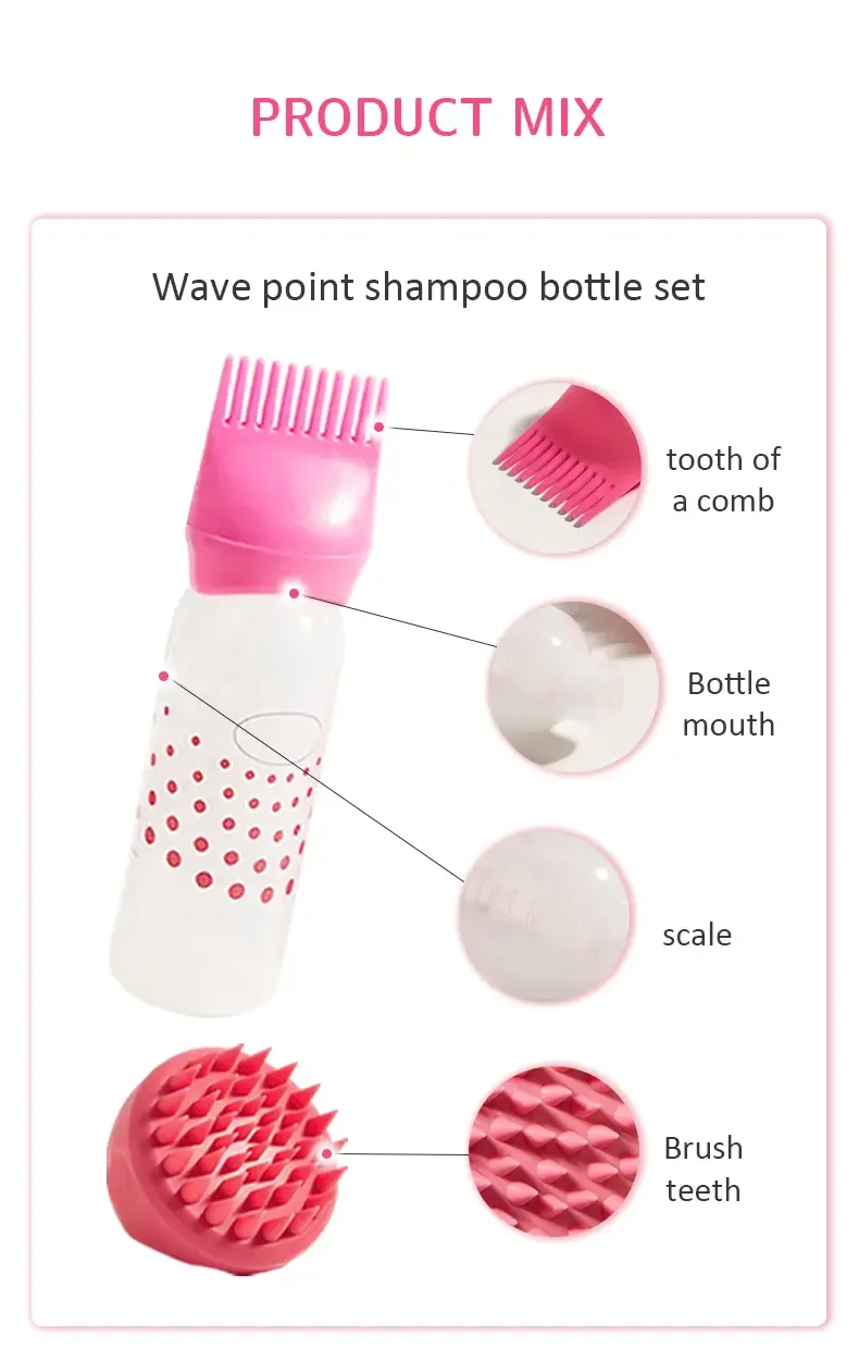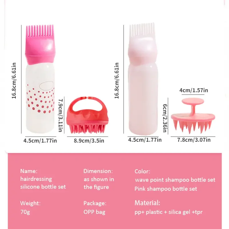 2pcs/set Silicone shampoo bottle PP Hair Dye Bottle With Aplicator, Oil Bottle Brush, Scalp Massage Brush Hair dye bottle