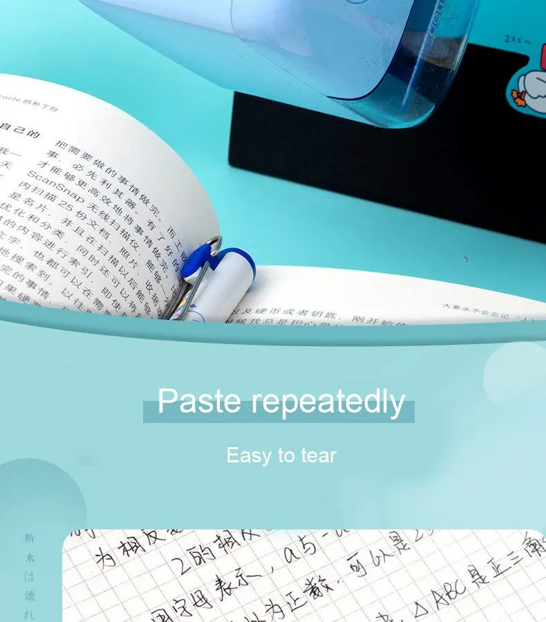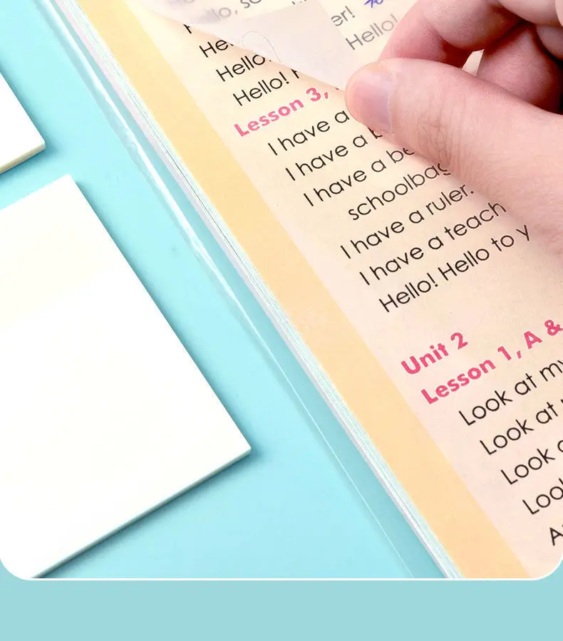 Two different sizes were sent. There is a 2cm adhesive part at the top of the back, making it easy to stick after taking notes.