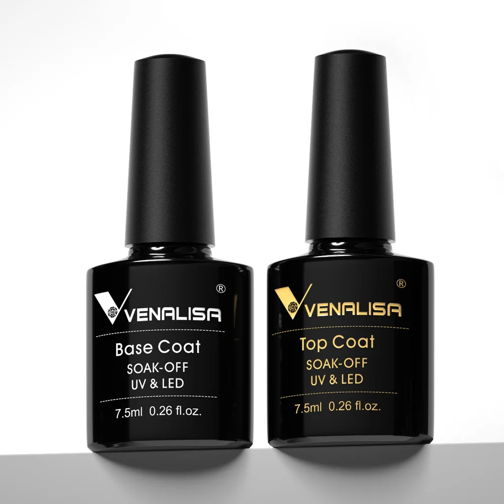 2pcs*7.5ml Venalisa Nude Color Gel Base Nowipe Top Coat Soak Off UV LED Gel Nail Polish Cosmetics Nail Art Manicure Nail Varnish