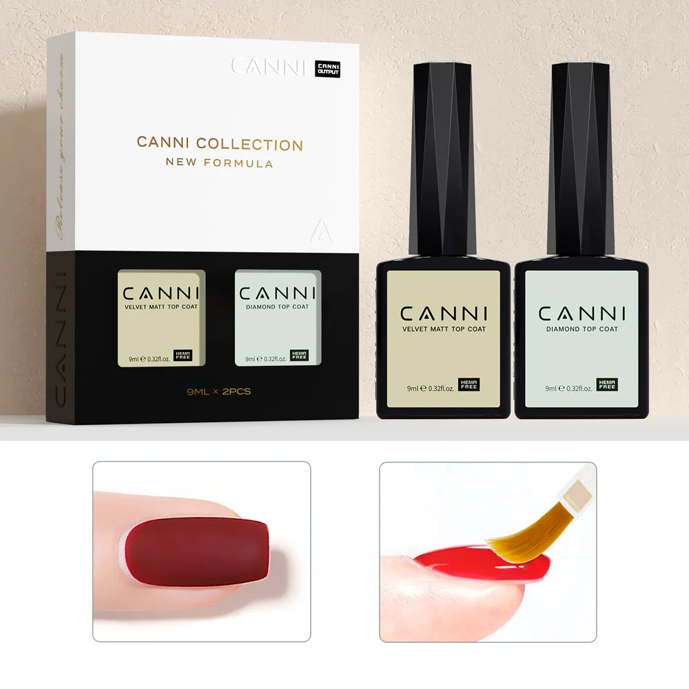 2pcs*9ml Hot Sale Diamond Tempered Top Base CANNI pH Bond Primer Dehydrator Pure Black Semi Permanent Nail Gel Polish Reinforce