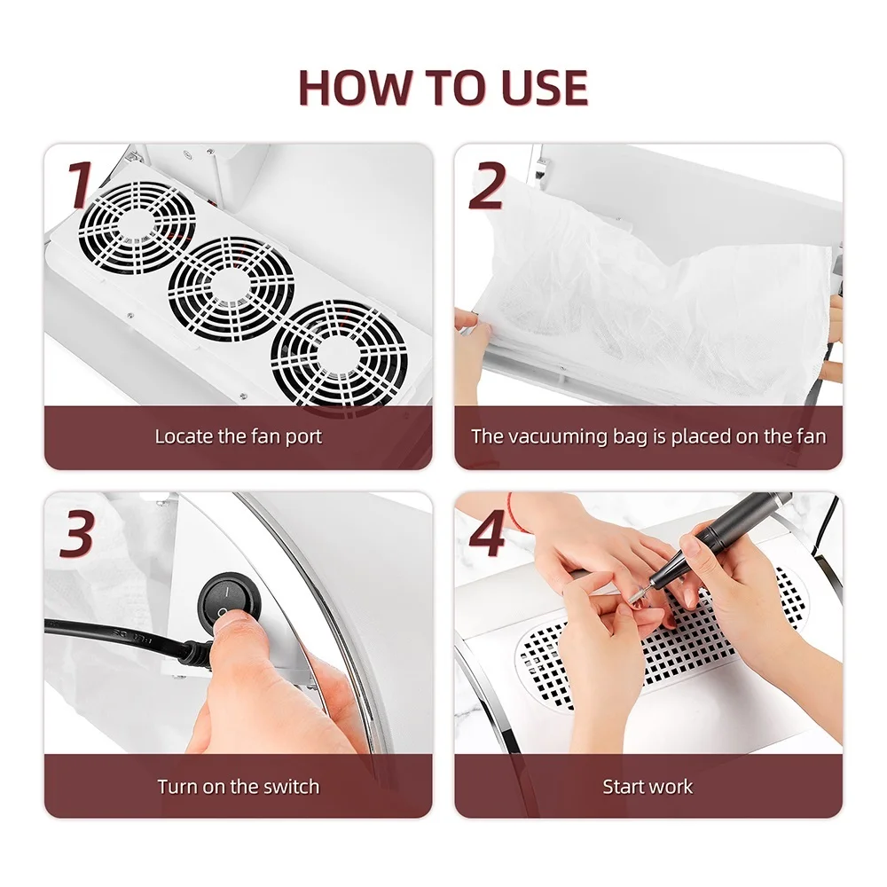 3 Fans Powerful Suction Professional Nail Dust Collector 40W Fan Nail Vacuum Cleaner Nail Dust Extractor For Nails Manicure