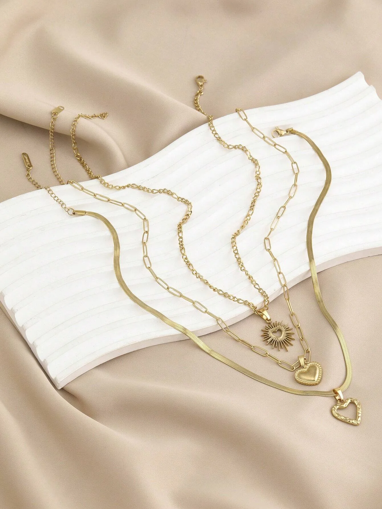3 Pcs Fashion Bohemia Heart Pendant Chain Layered Necklace for Women Summer Beach Simple Copper Metal Necklace Jewelry Gift 2024