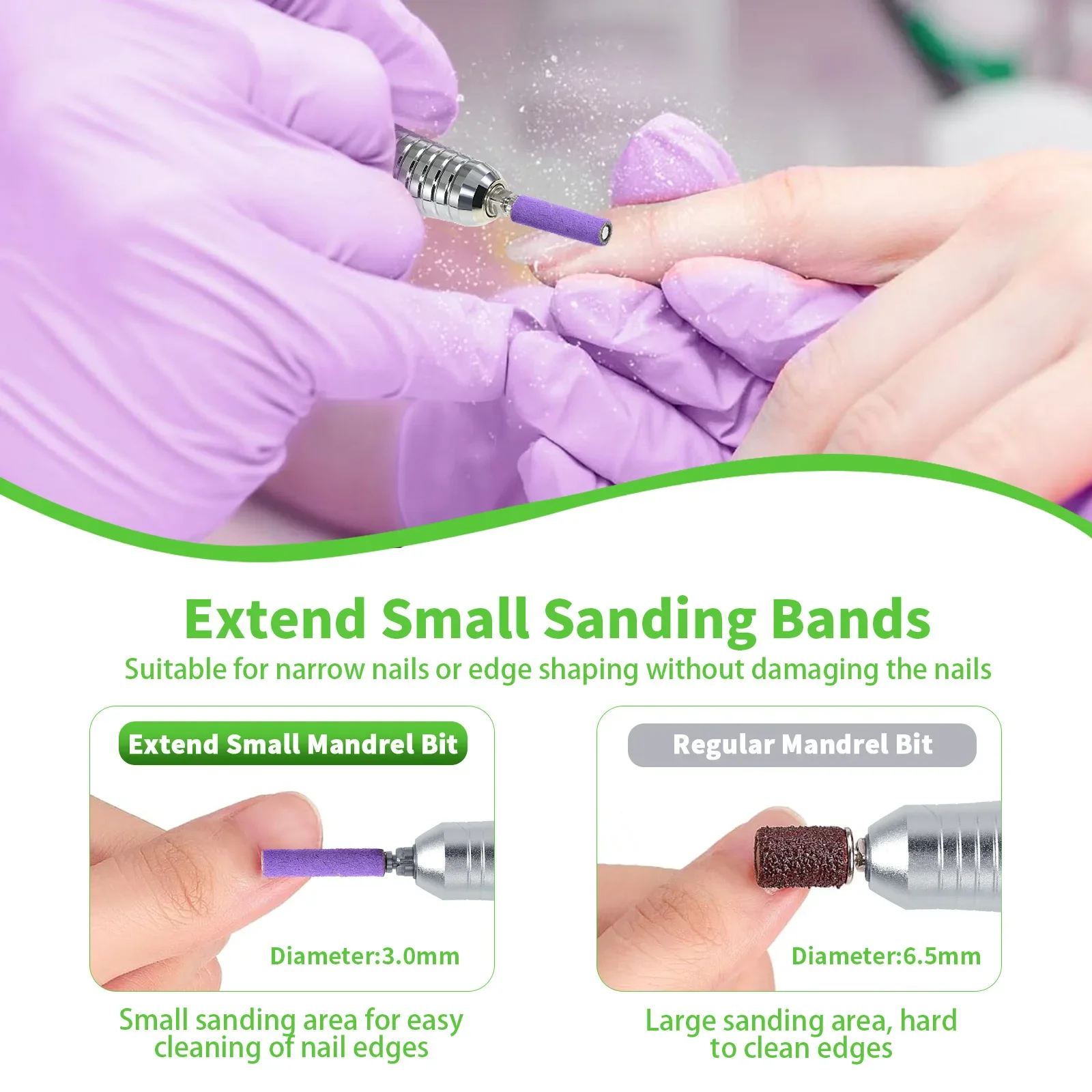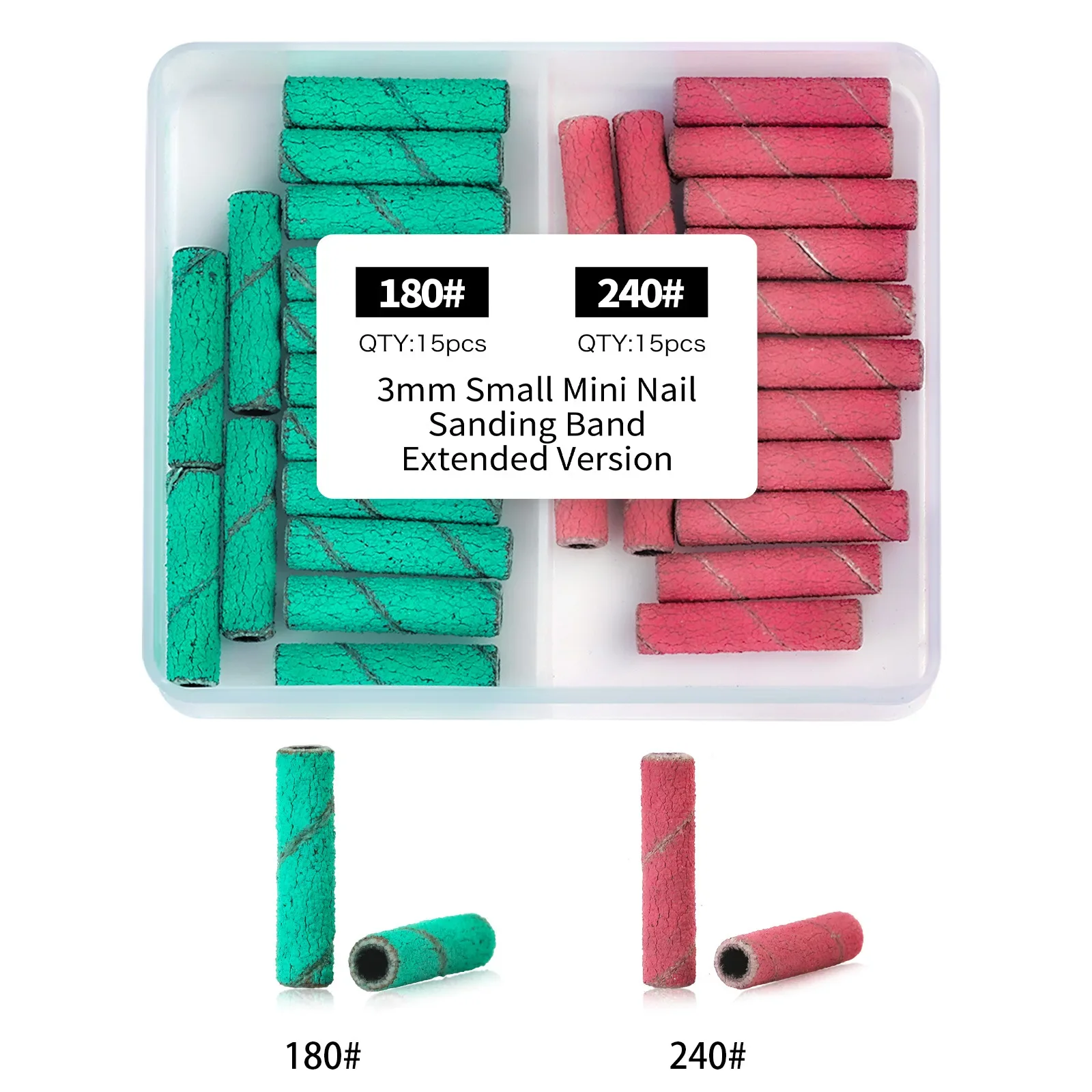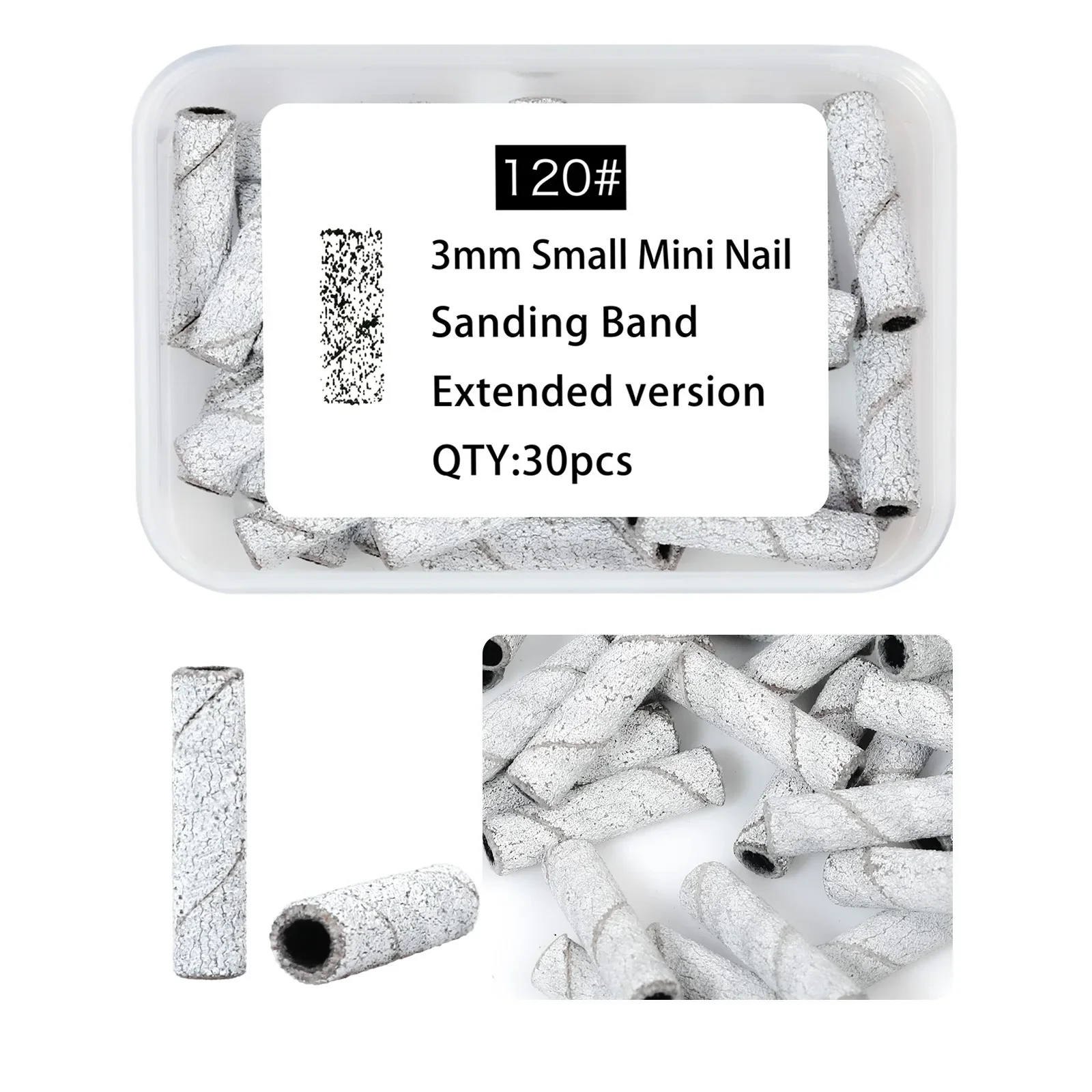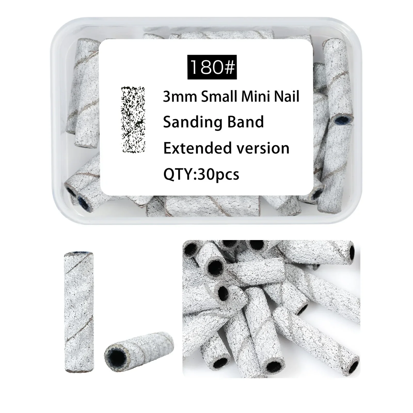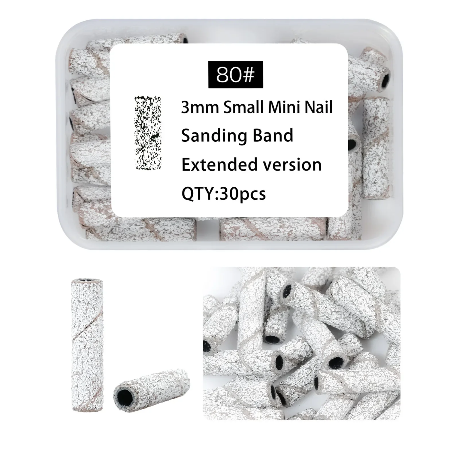 30/40PC 3mm Mini Extra Long Sanding Bands Sets For Acrylic&Polish Gel Removal 80#120#180#240# Stainless Steel Cuticle Drill Bit