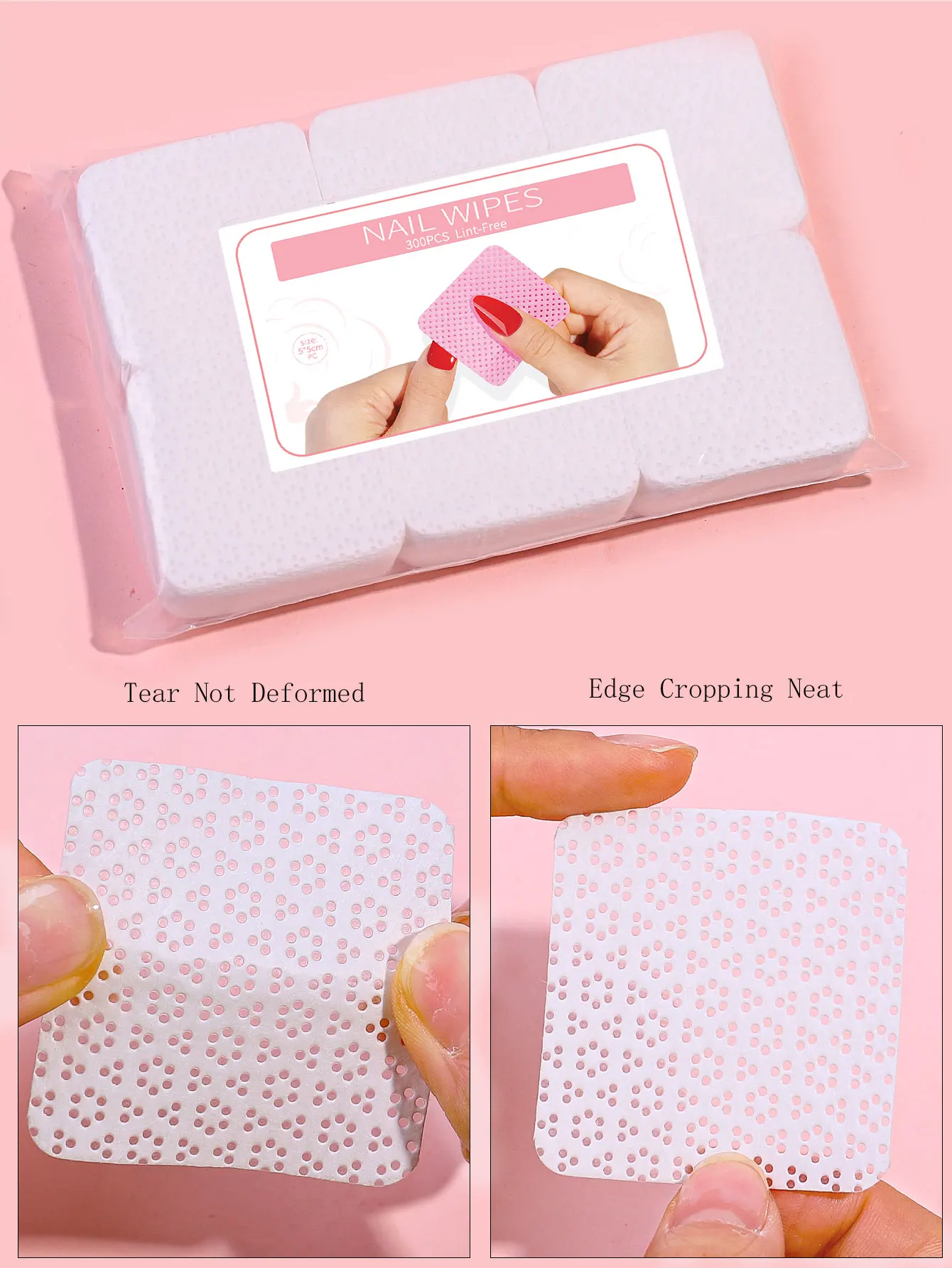 300pcs Fiber-Free Manicure Pads Easy Removal For Gel Polish White Pink Cotton Wipes Paper Pads UV Gel Non Woven Nail Cleaner Pad