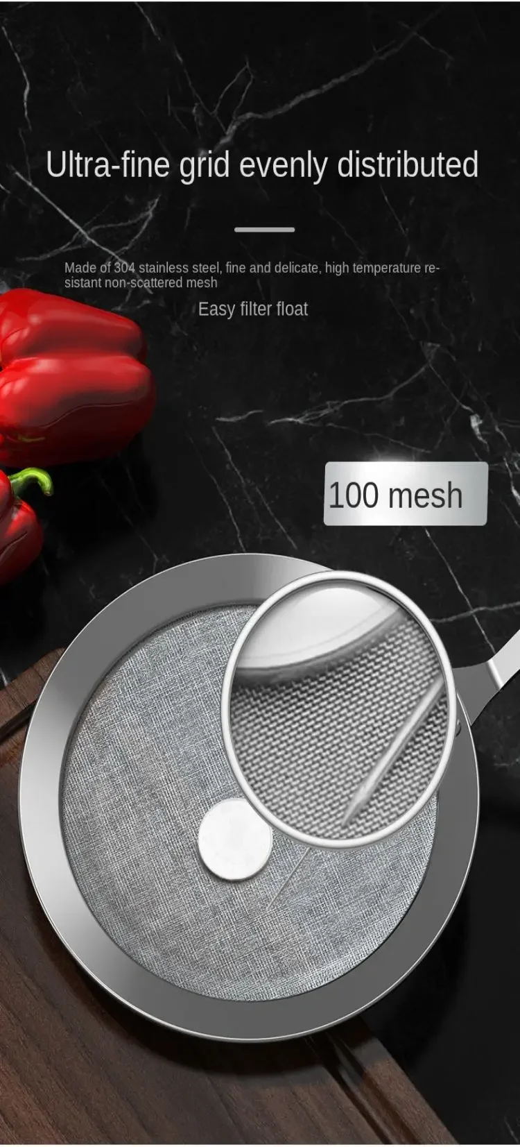 304 Stainless Steel Fine Mesh Filter, Multi-Function Colander for Juice, Coffee, Tea, & Vegetables, Kitchen Accessories