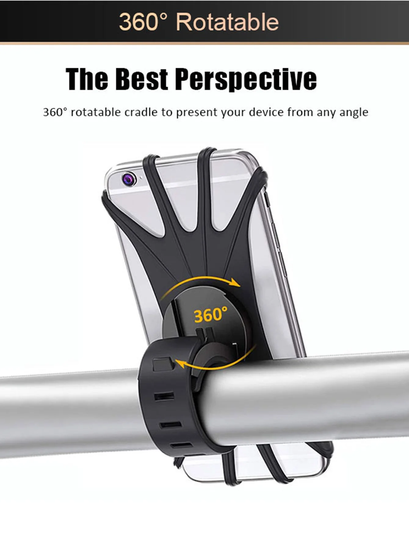 360 Rotatable Bicycle Phone Holder Silicone Motorcycle Stand Bracket GPS Support Universal Bicycle Mobile for 4.0-6.0 Inch Phone