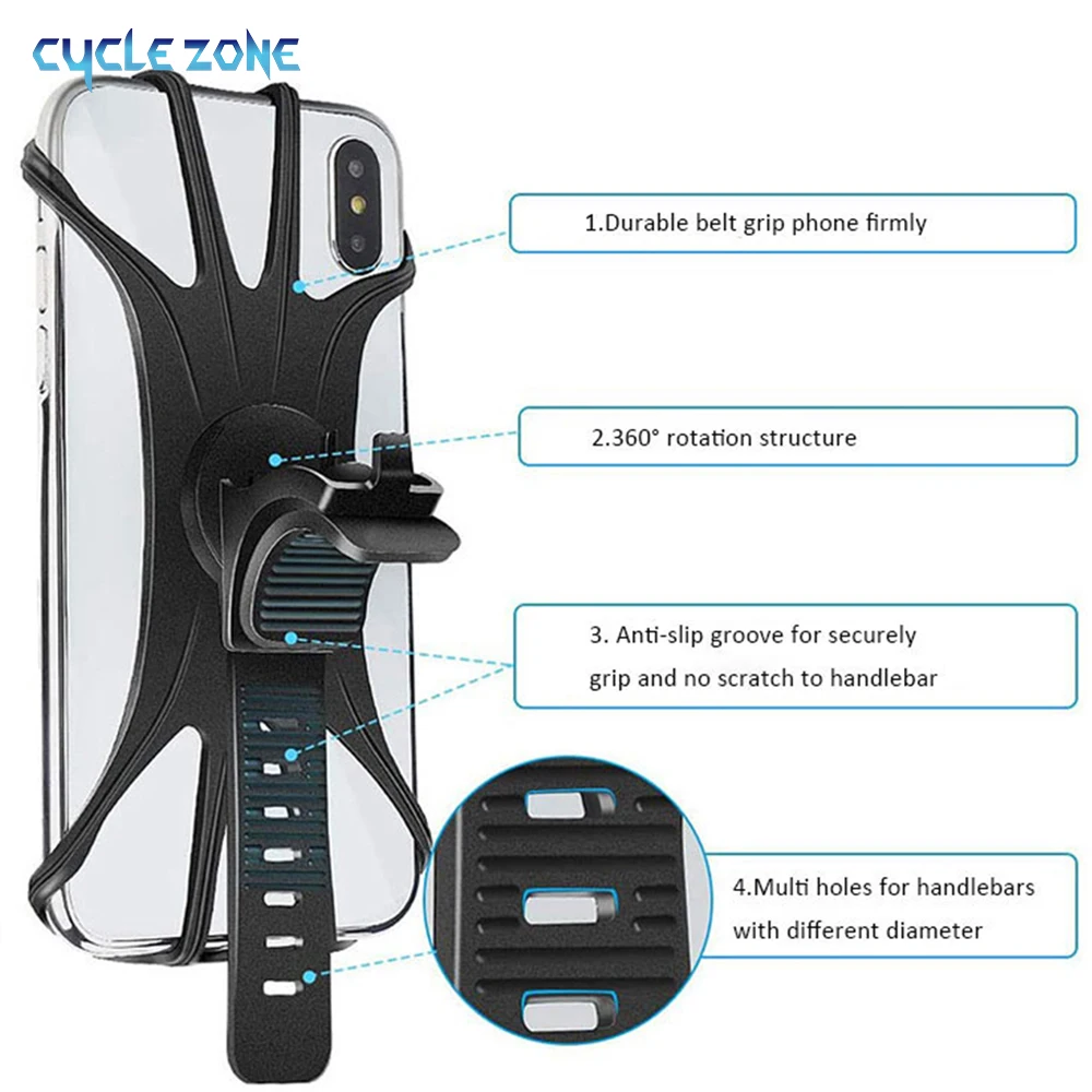 360 Rotatable Bicycle Phone Holder Silicone Motorcycle Stand Bracket GPS Support Universal Bicycle Mobile for 4.0-6.0 Inch Phone