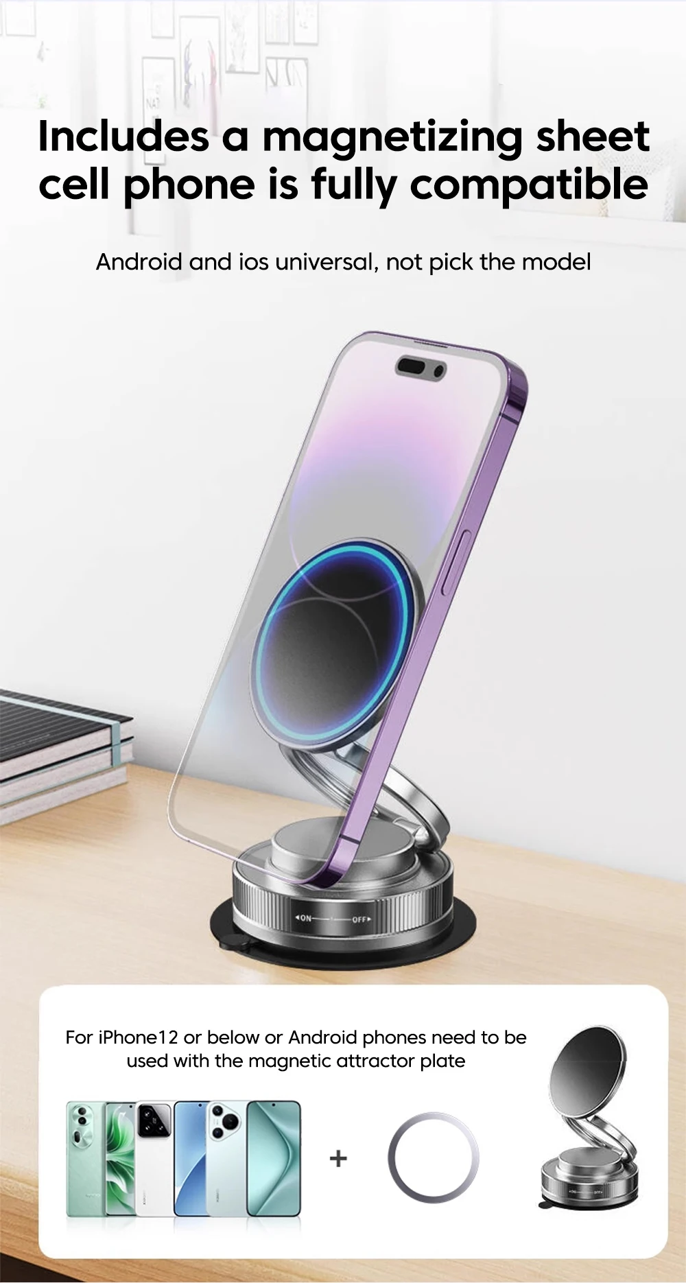 360° Rotation Car Dashboard Holder Magnetic Suction Cup Holder Foldable Kitchen Lazy Phone Bracket For iPhone Android Smartphone