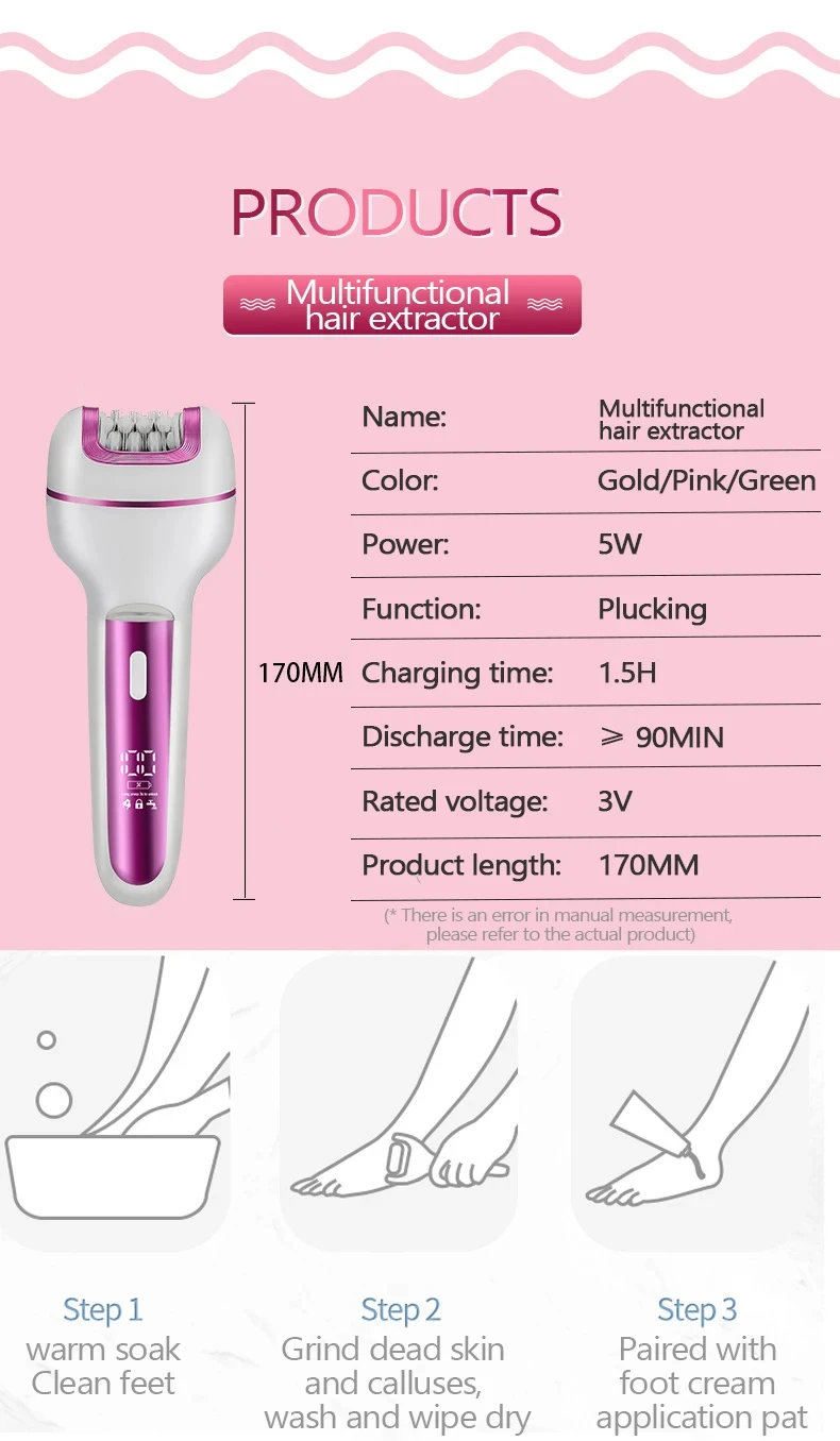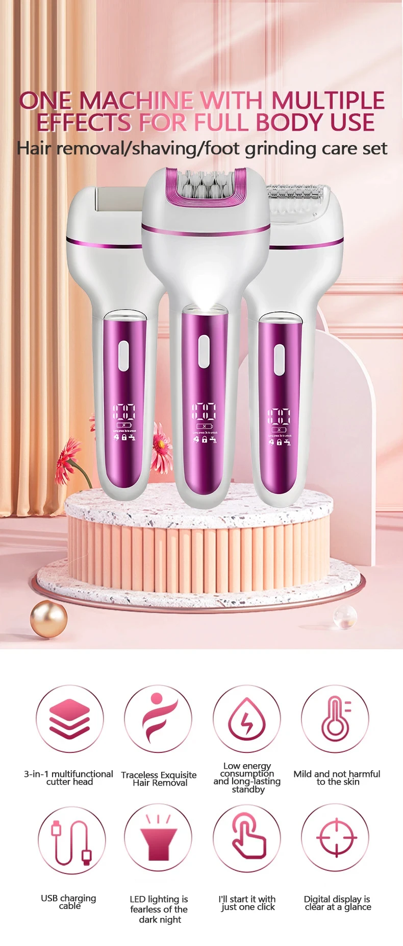 3in1 Rechargeable Women Epilator For Face Body Electric Shaver Female Hair Removal Bikini Trimmer Leg Lady Shaver Callus Remover
