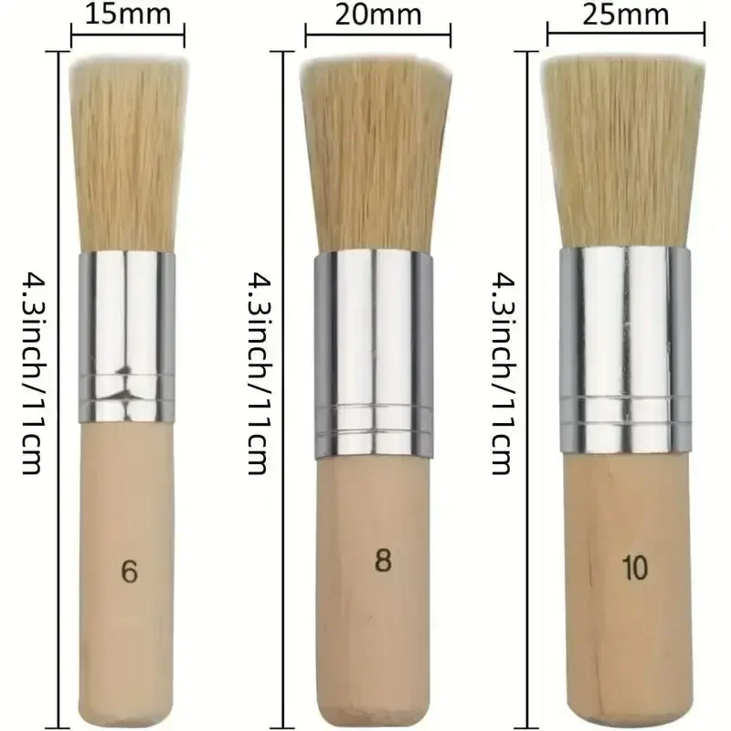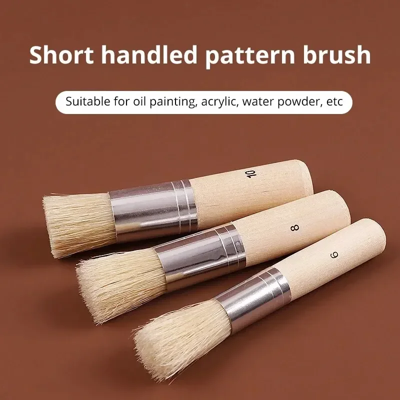 3pcs DIY Wooden Stencil Brush, Pure Natural Bristle Paint Brush Perfect For Acrylic Paint, Wood, Oil Painting
