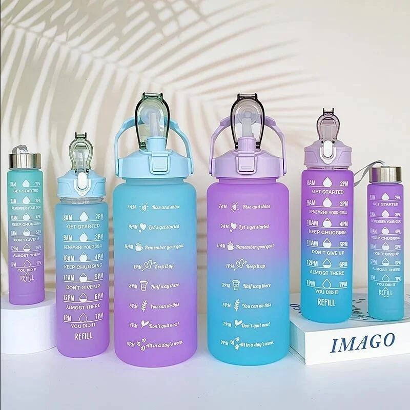 38 reviews for 3Pcs Gradient Plastic Cup Set Large Capacity Sports Water Bottle Outdoor Travel Gym Fitness Jugs Student Portable Cup WIth Straw