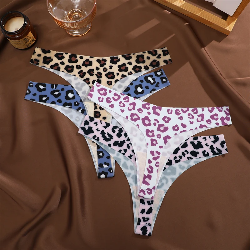 3PCS Ultra-thin Underwear For Women Sexy Graphic Print Seamless Thongs Female Stretch Leopard Intimate Comfort Lingerie S-XL