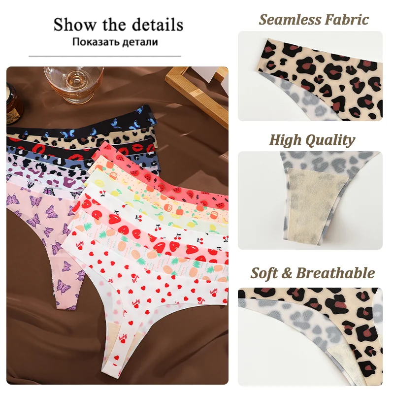 3PCS Ultra-thin Underwear For Women Sexy Graphic Print Seamless Thongs Female Stretch Leopard Intimate Comfort Lingerie S-XL