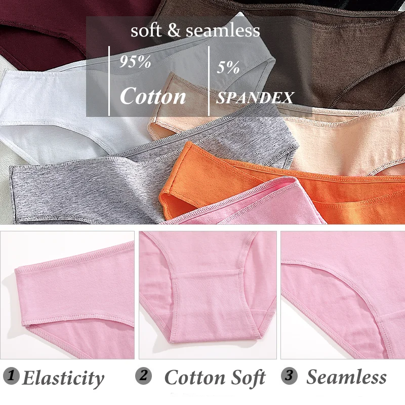 3Pcs Women’s Cotton Briefs Seamless Underwear Women Panties Sexy Breathable Briefs Female Stretch Ladies Soft Lingerie