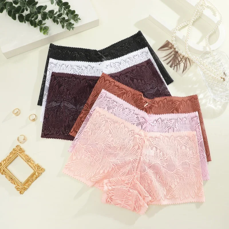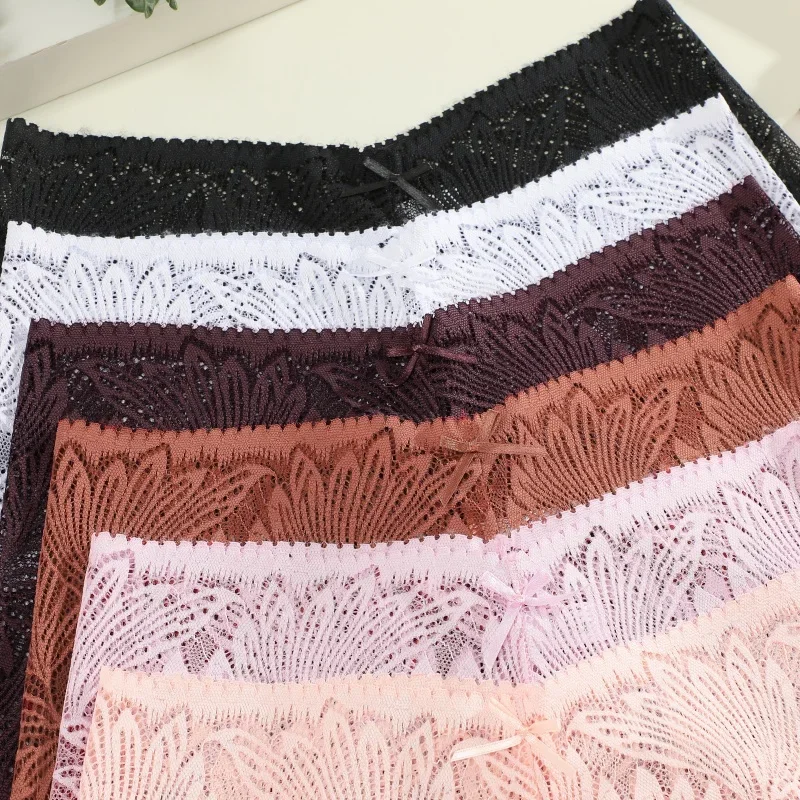 3Pcs Women’s Seamless Lace Briefs Women Plus SizePanties Solid Color Breathable Underwear Female Low Waist Soft Lingerie S-XL