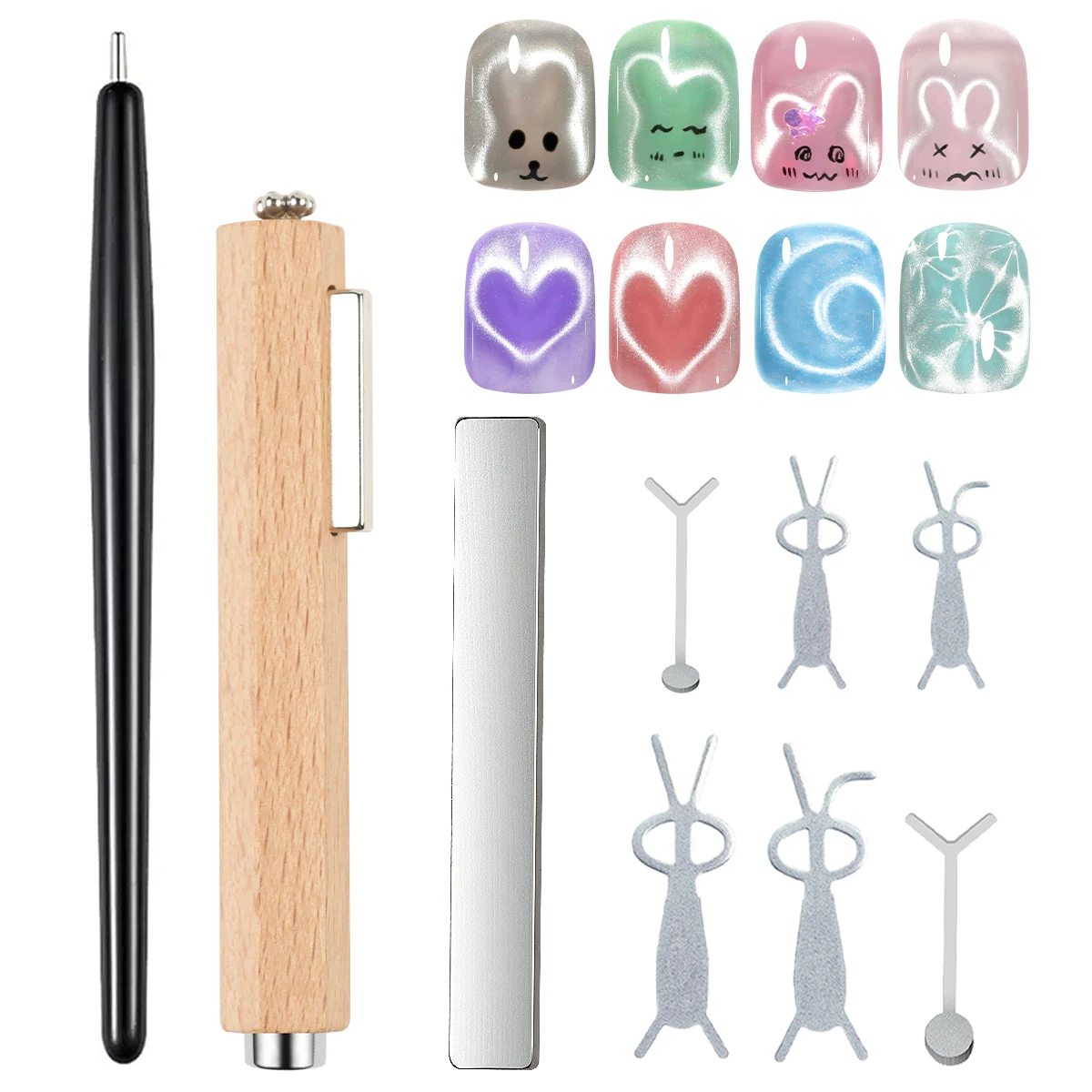 4/7/6/9pcs Cat Eye Magnet Set With Iron for Nails Heart Shaped Rabbit Iron Magnetic Design DIY Nail Tool Back To School