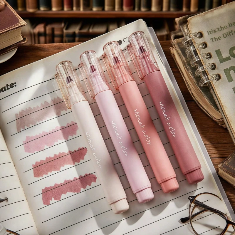 4 Pack Soft Touch Fluorescent Gel Pens Morandi Pink WaterBased Ink Quick Dry Tip for Office School Highlighting Writing