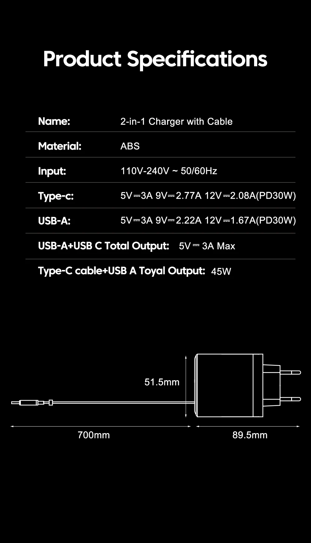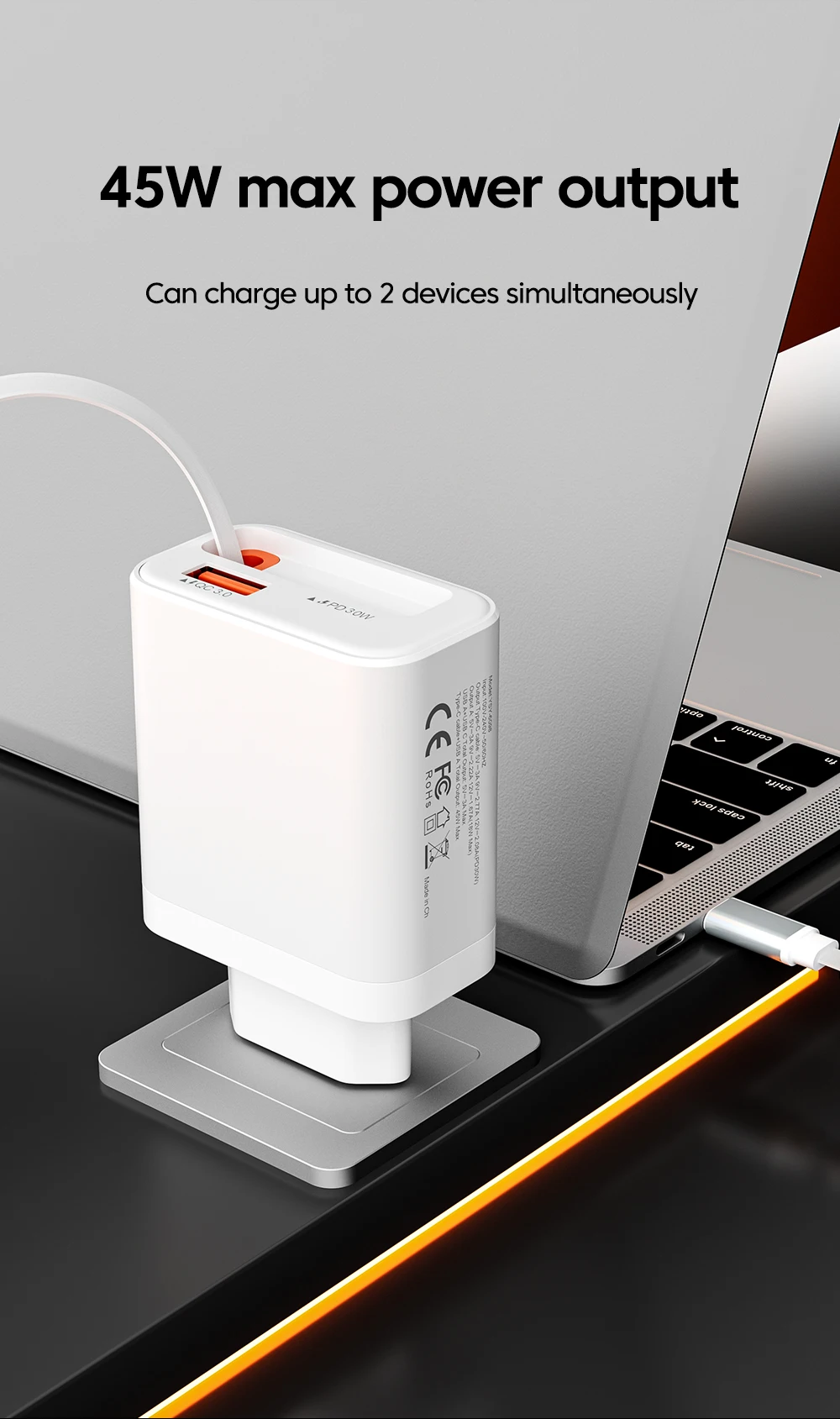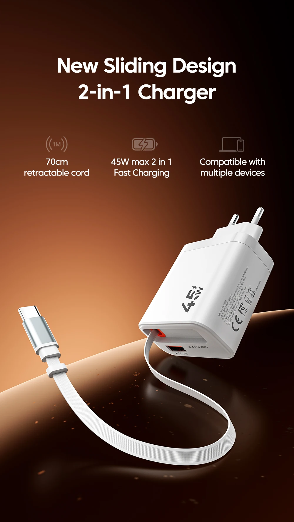 45W Super Fast Charge Type C USB Phone Charger With Retractable USB C Cable For Iphone 17 16 15 Samsung POCO Xiaomi