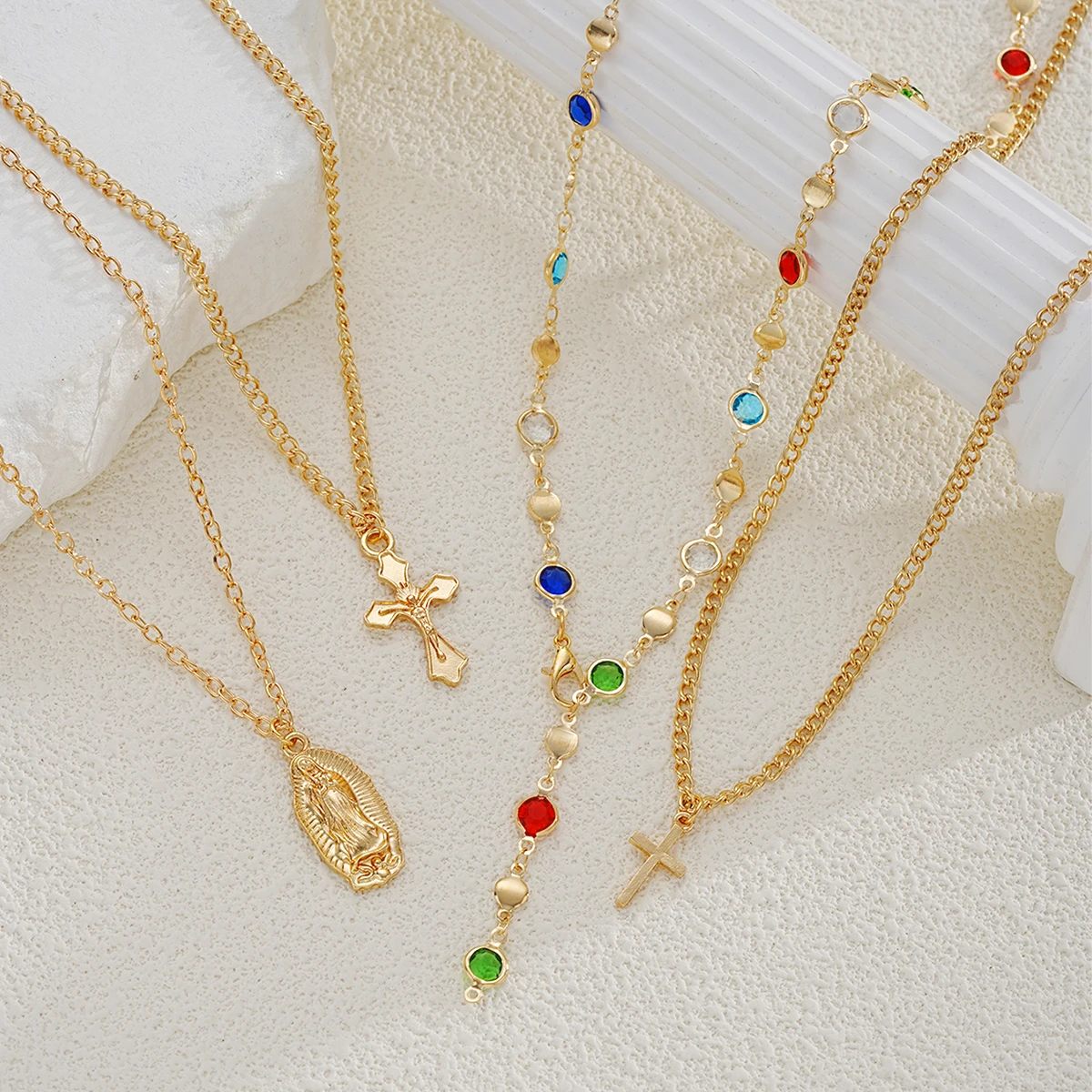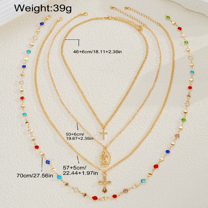 4Pcs/Set Cross Colorful Crystal Necklaces For Women Simple Gold Silver Color Y-Shaped Pendant Necklace Set New Christian Jewelry