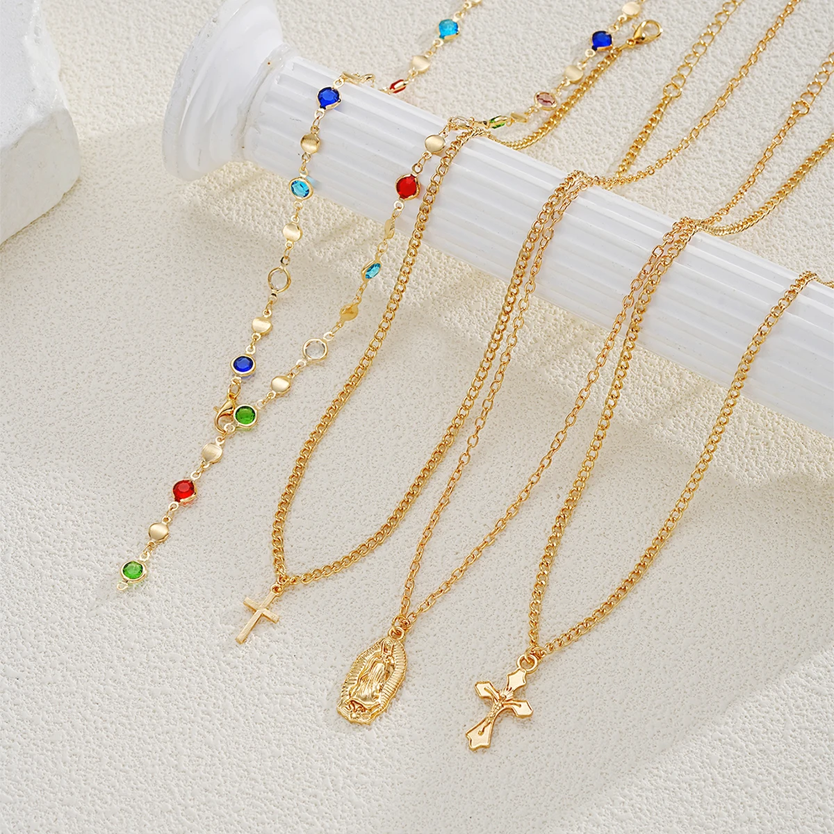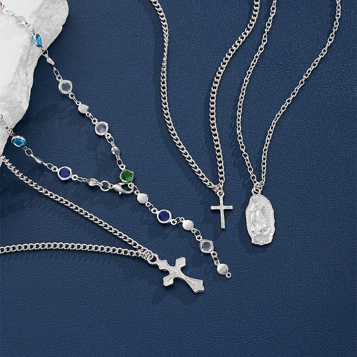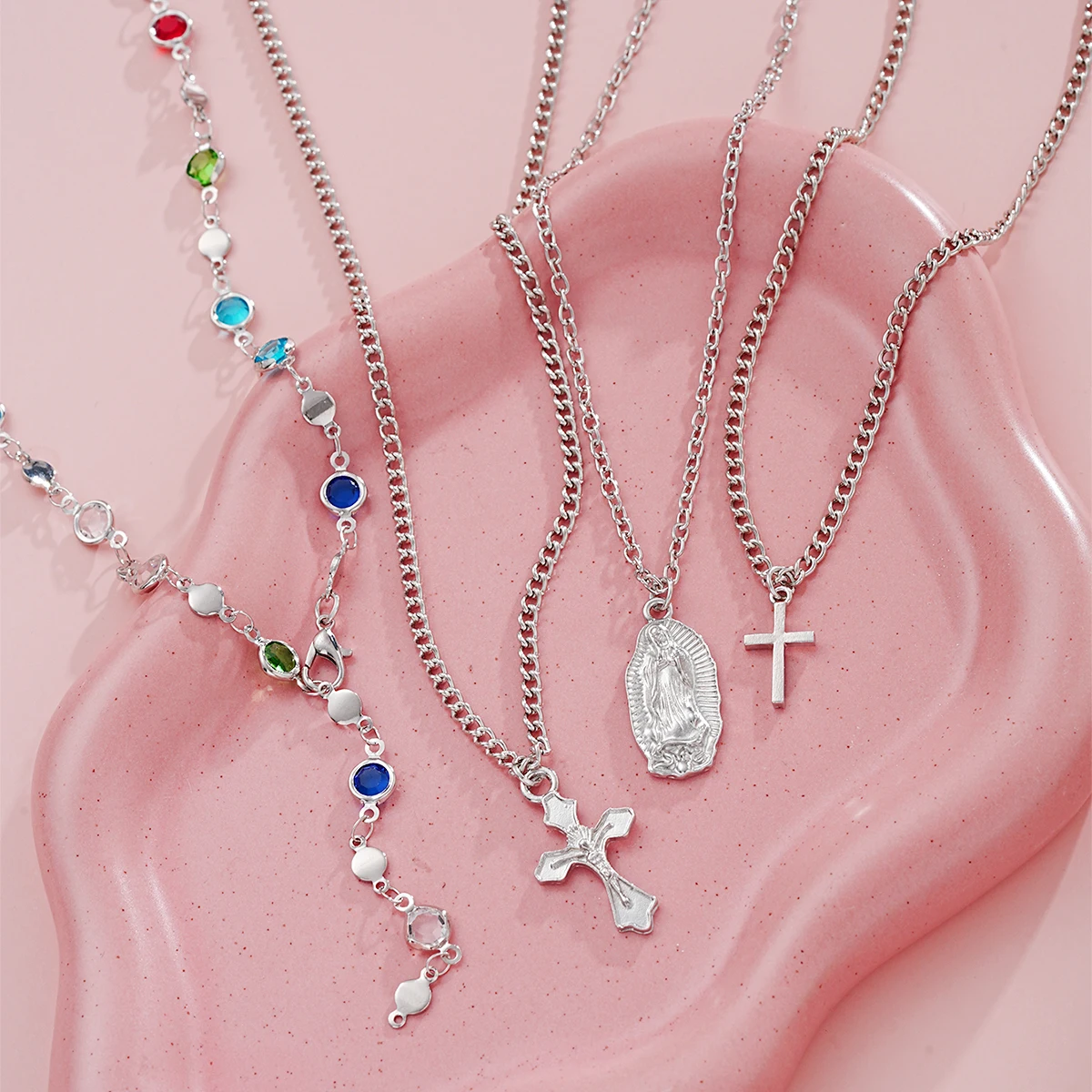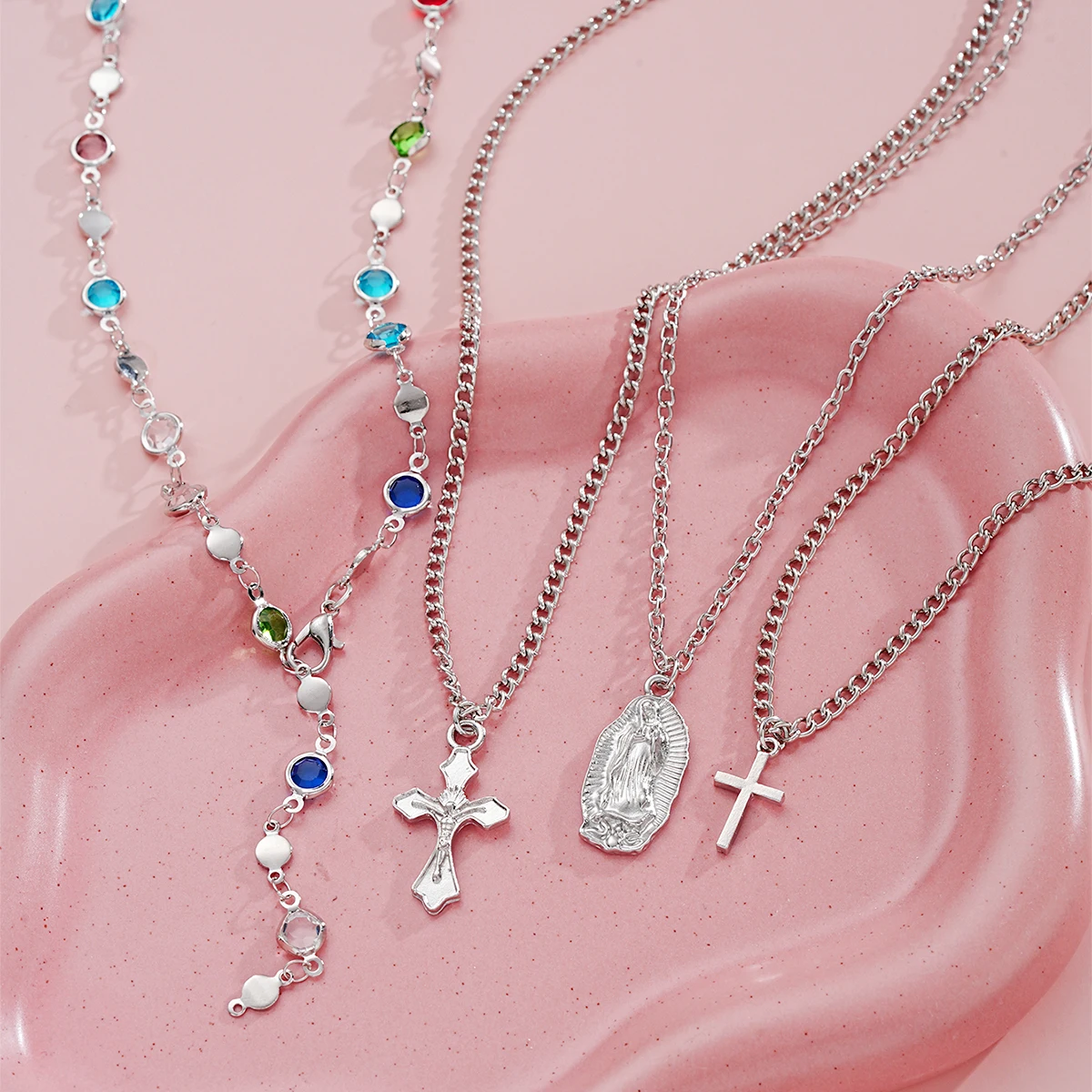 Be the first to review “4Pcs/Set Cross Colorful Crystal Necklaces For Women Simple Gold Silver Color Y-Shaped Pendant Necklace Set New Christian Jewelry” Cancel reply