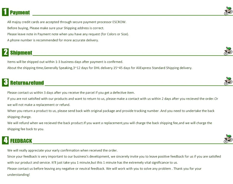 Please ensure your shipping address is entered correctly at checkout. Orders returned due to incorrect or incomplete addresses may require additional reshipping fees. If tracking shows a completed delivery but the package is missing, check with local carriers or neighbors before contacting support.
