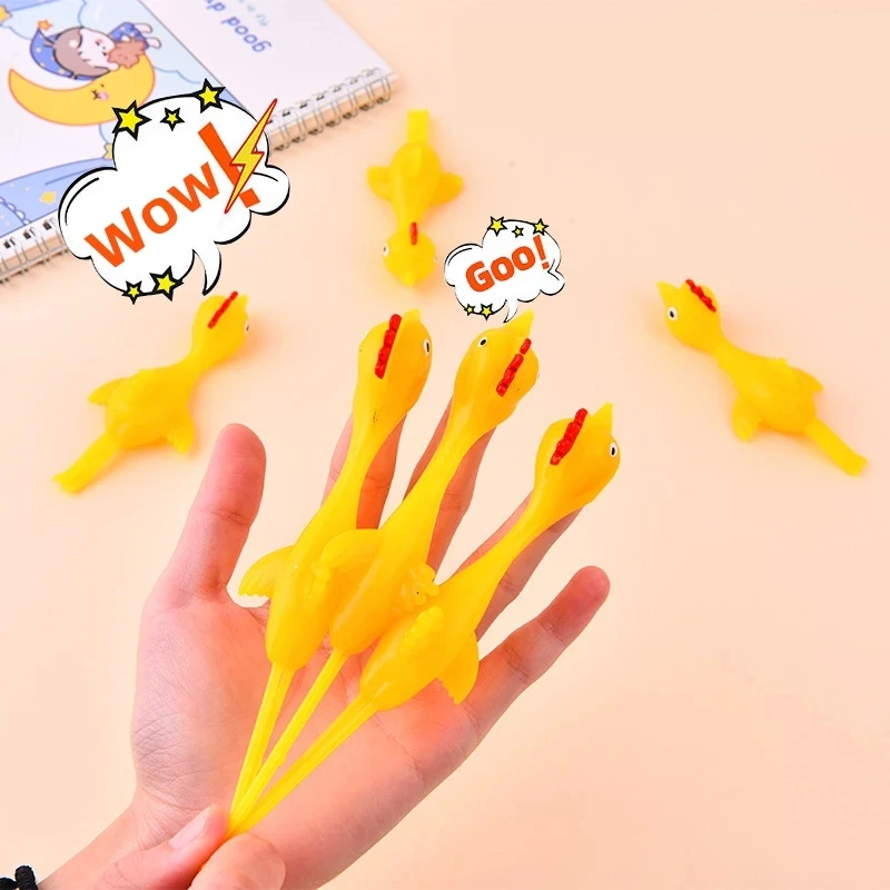 5-50pcs Novelty Catapulted Ejection Chicken Toy Light Rubber Finger Prank Flying Toy Slingshot Chicken Finger Toys Turkey Sticky