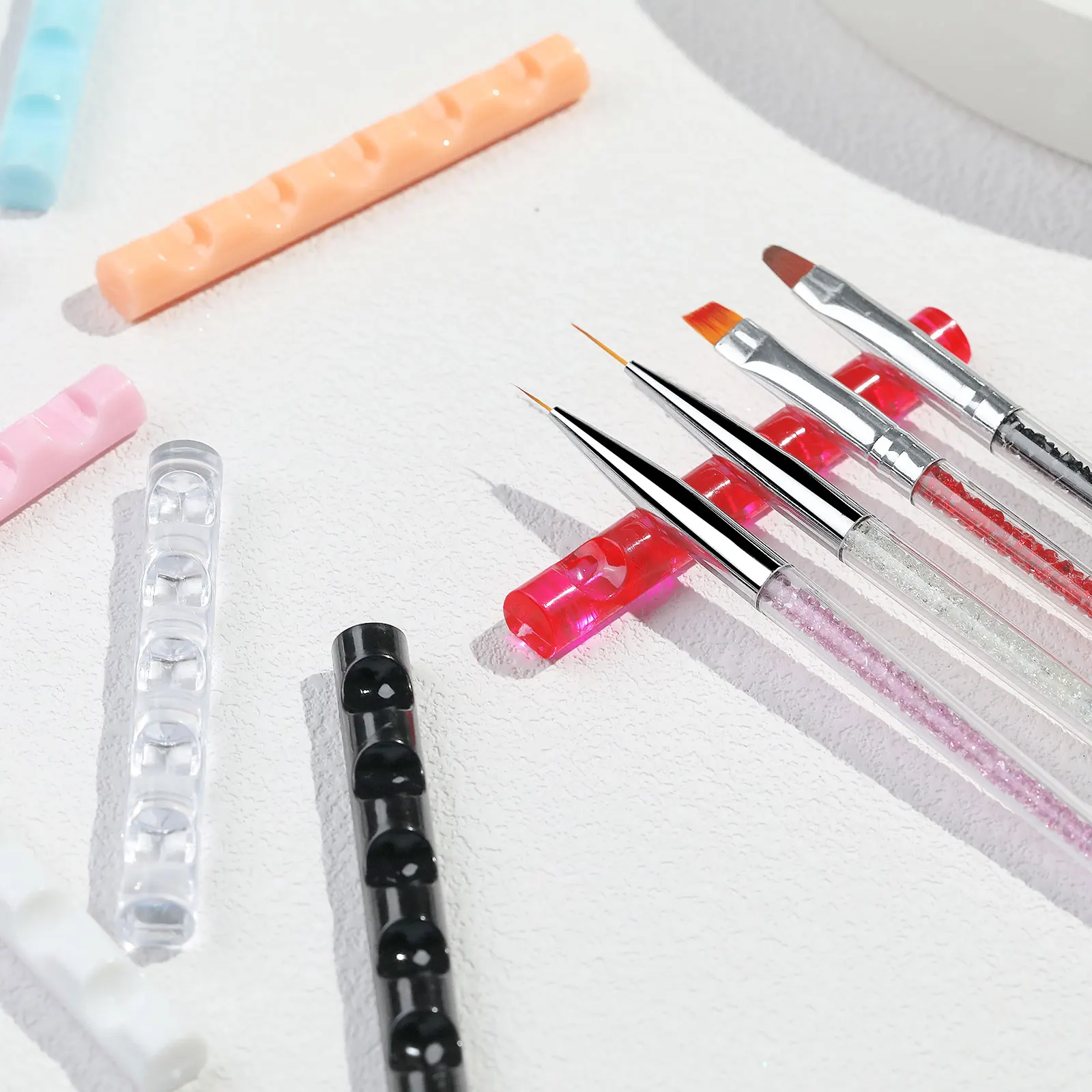 5 Grids Acrylic Clear Nail Brush Shelf Portable Mini crystal Painting Pen Rest Holder Stand Colorful UV Gel Brush Display Holder