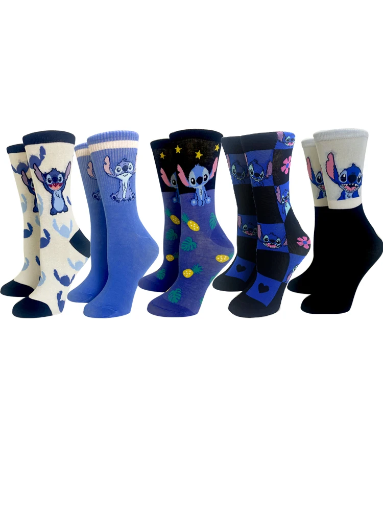 5 Pairs Cartoon Stitch Women socks cotton comfortable Anime socks crew socks Casual happy funny socks Size 35-40