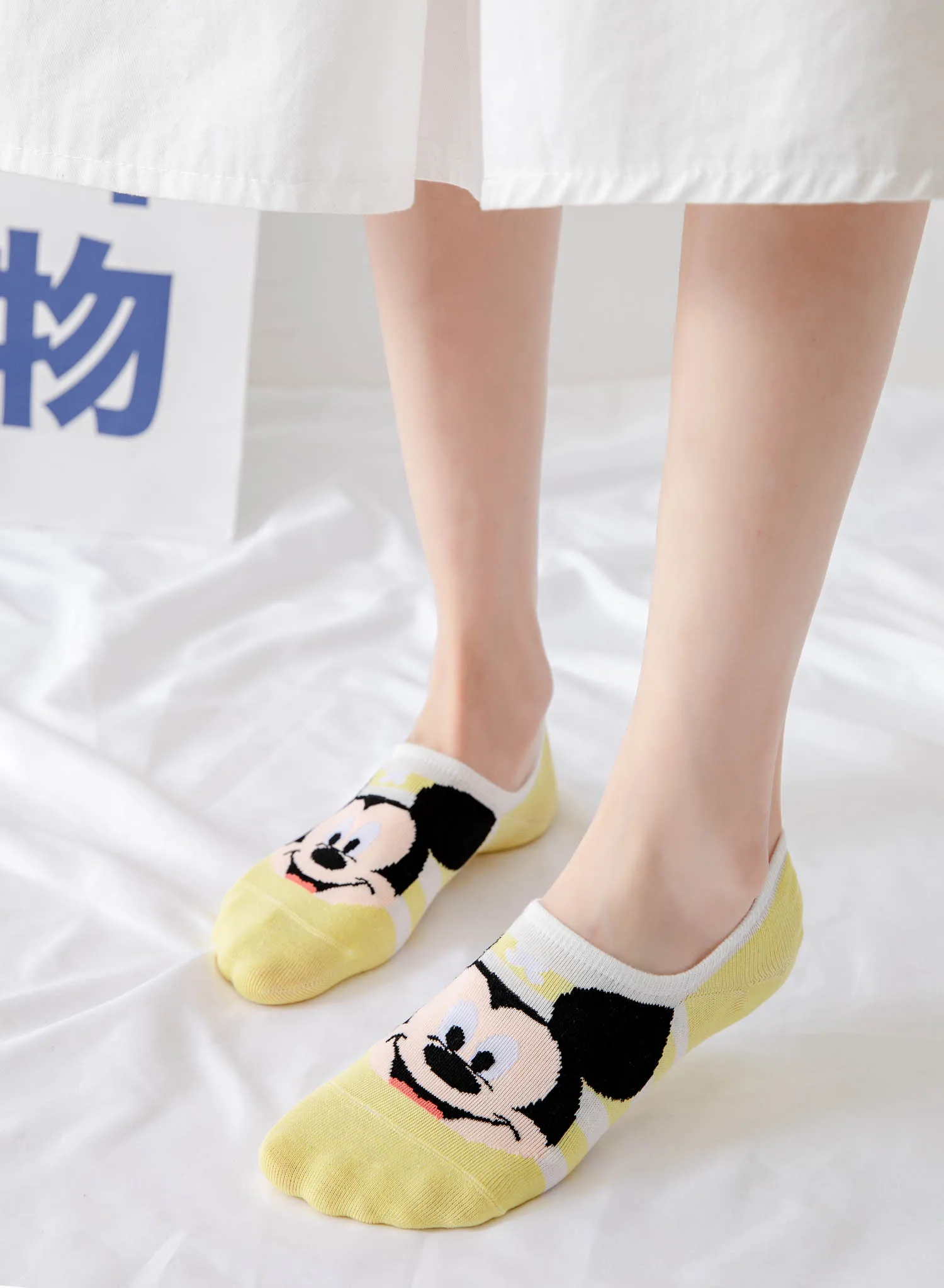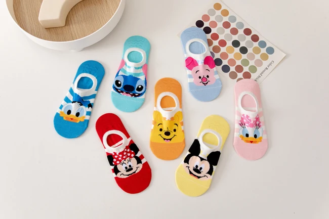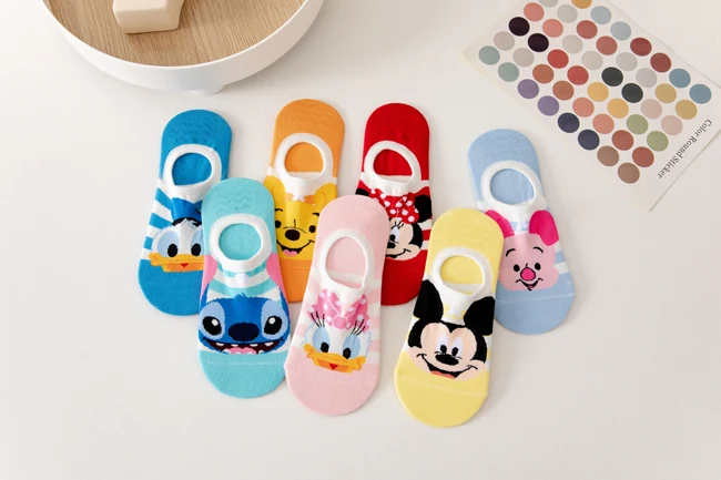 5 pairs Cotton woman sock Mickey Minnie Winnie Daisy Cartoon girl slipper sock Funny Cute Non-slip silicone invisible ankle sock