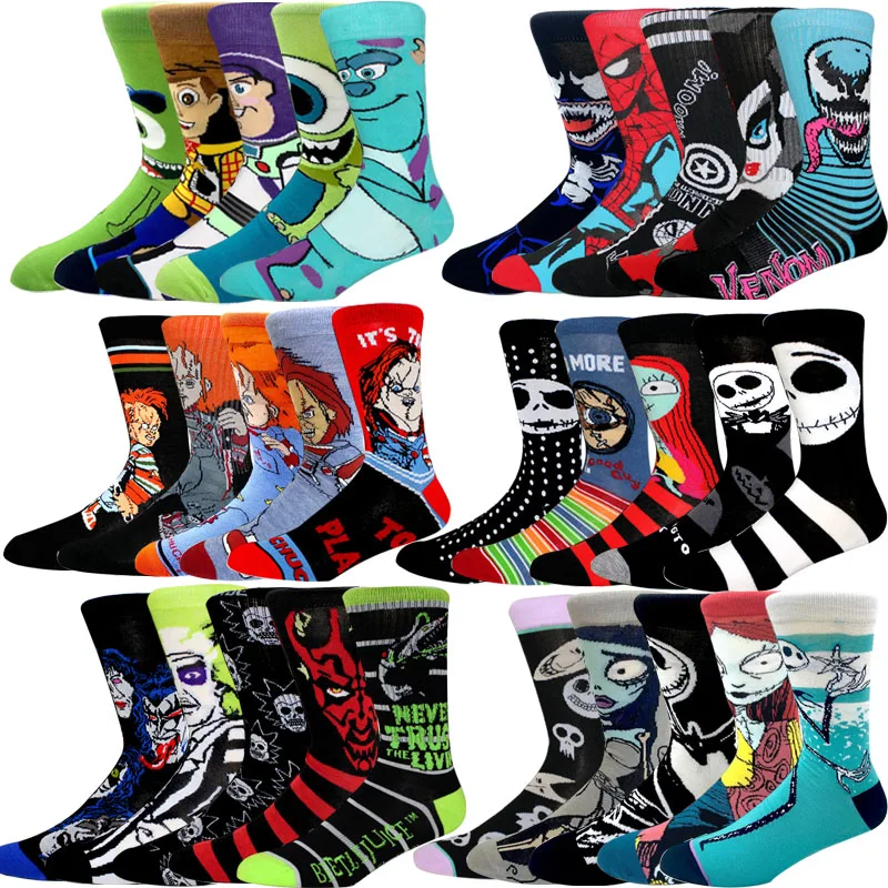 5 Pairs New Anime Men Socks Long Socks novel Knee-High Couples cosplay Socks Personality Hip Hop Harajuku Funny Socks for Women